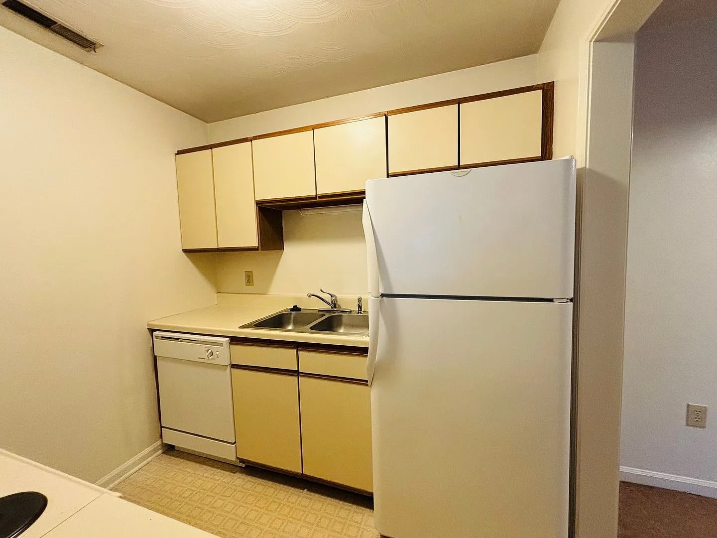Step inside to a spacious living room filled with natural light, perfect for relaxing or entertaining. A smart cut-out to the kitchen allows for easy serving and keeps you connected while cooking. There's also room for a dining table, creating a comfortable space for meals or study sessions. Two ample sized bedrooms with closet space and a shared full bath. A laundry closet with a stacked washer and dryer adds everyday convenience, and the deck is perfect for unwinding, enjoying your morning coffee, or adding a splash of green with a container garden.