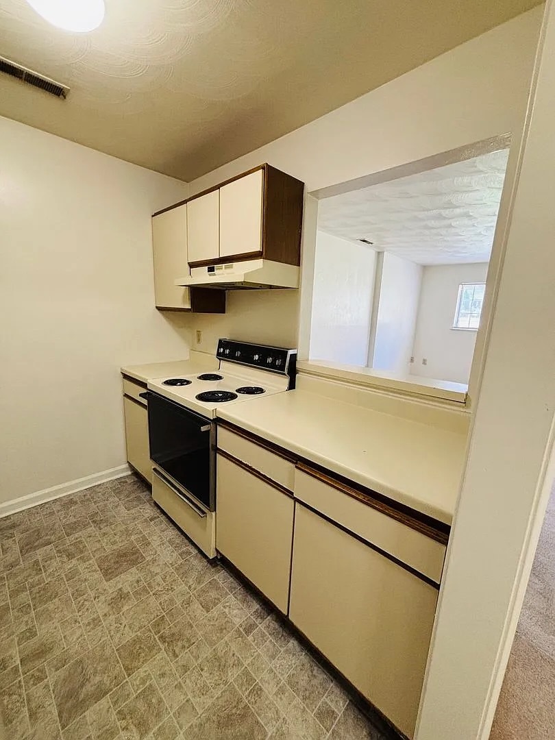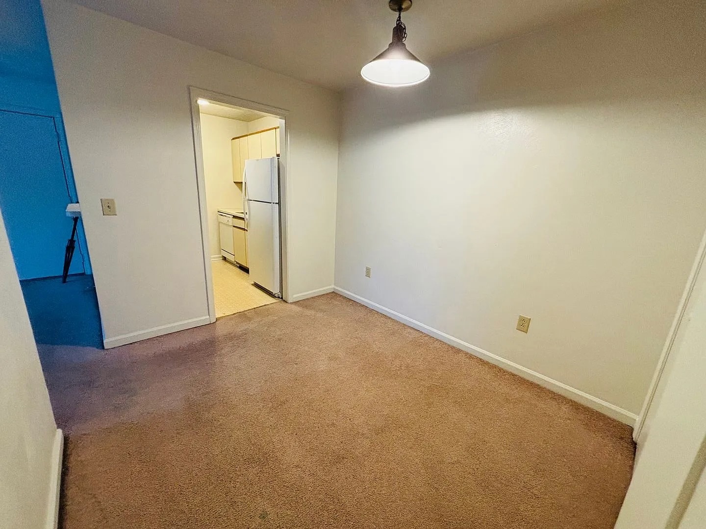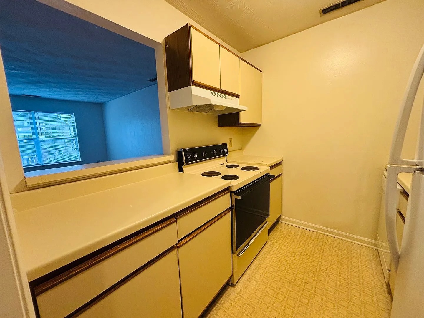 Step inside to a spacious living room filled with natural light, perfect for relaxing or entertaining. A smart cut-out to the kitchen allows for easy serving and keeps you connected while cooking. There's also room for a dining table, creating a comfortable space for meals or study sessions. Two ample sized bedrooms with closet space and a shared full bath. A laundry closet with a stacked washer and dryer adds everyday convenience, and the deck is perfect for unwinding, enjoying your morning coffee, or adding a splash of green with a container garden.