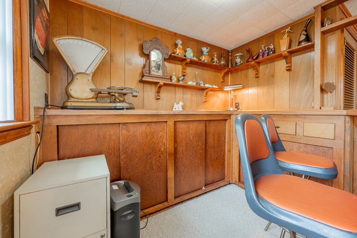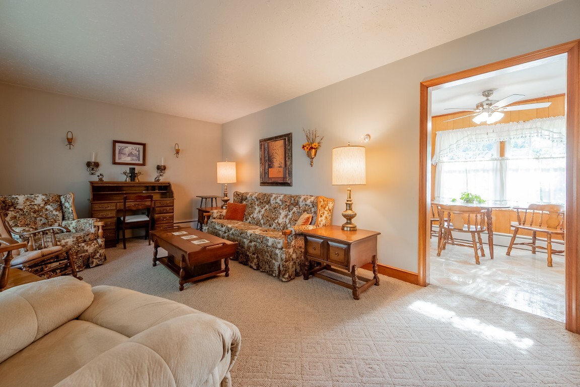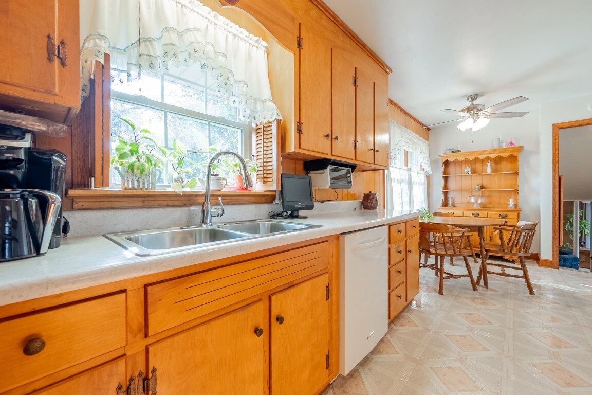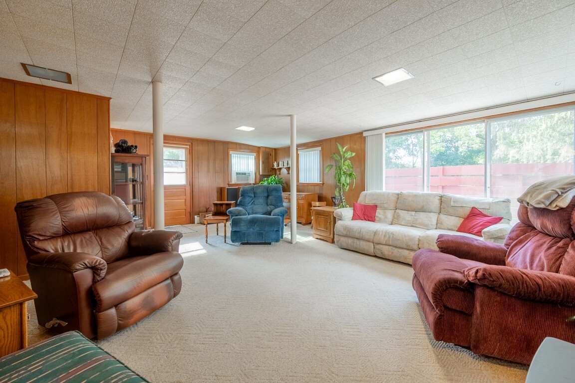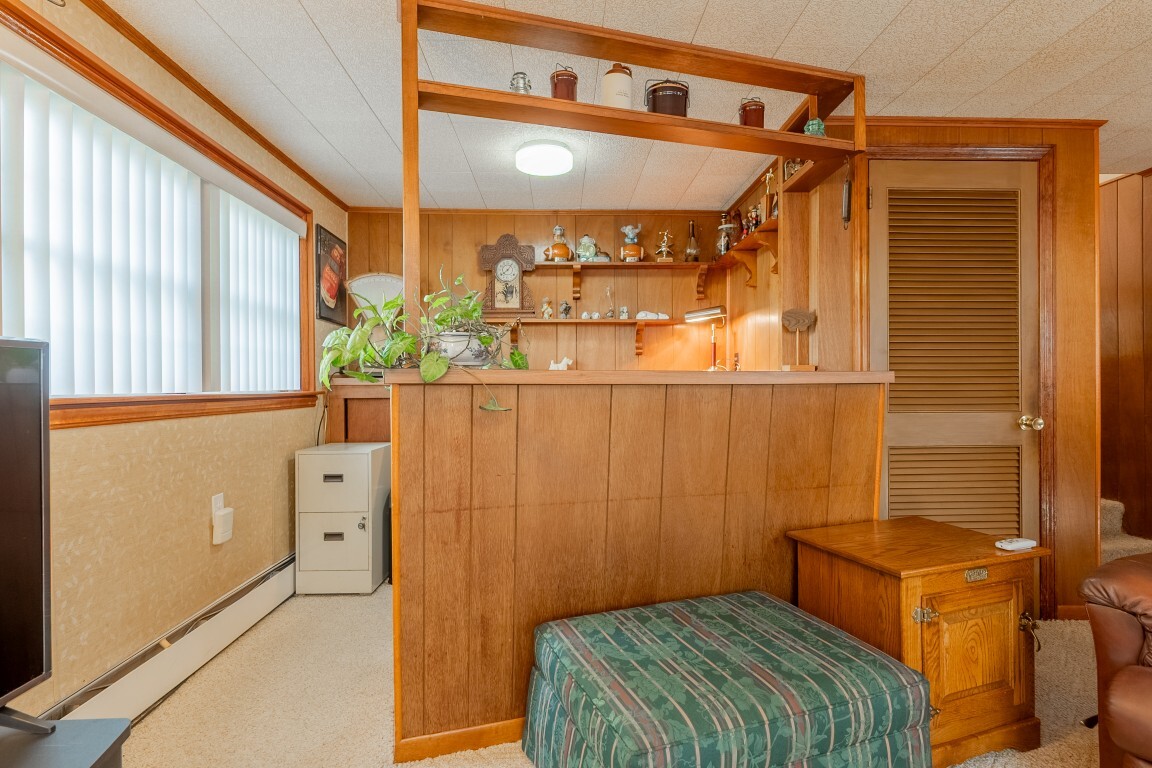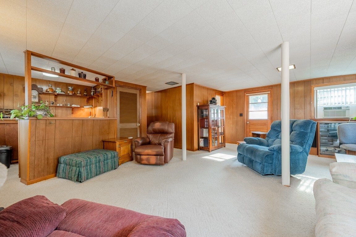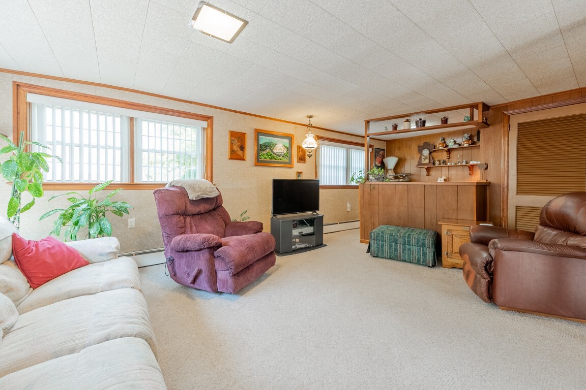 A warm and inviting atmosphere begins with a bright living room where large windows flood the space with natural light. The adjacent eat-in kitchen showcases an abundance of cabinetry, charming wood paneling and provides plenty of room for casual dining. Thoughtfully designed, flowing layout offers distinct yet connected spaces, making it easy to move from room to room while maintaining a sense of coziness and comfort.
