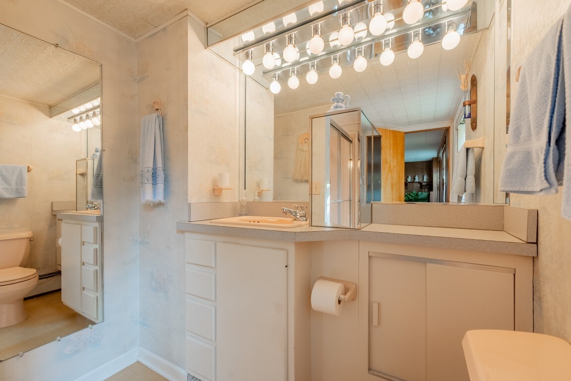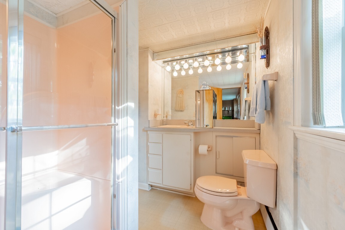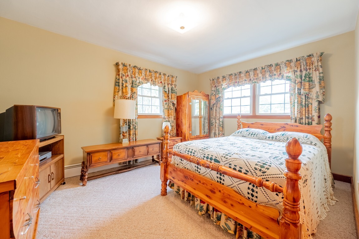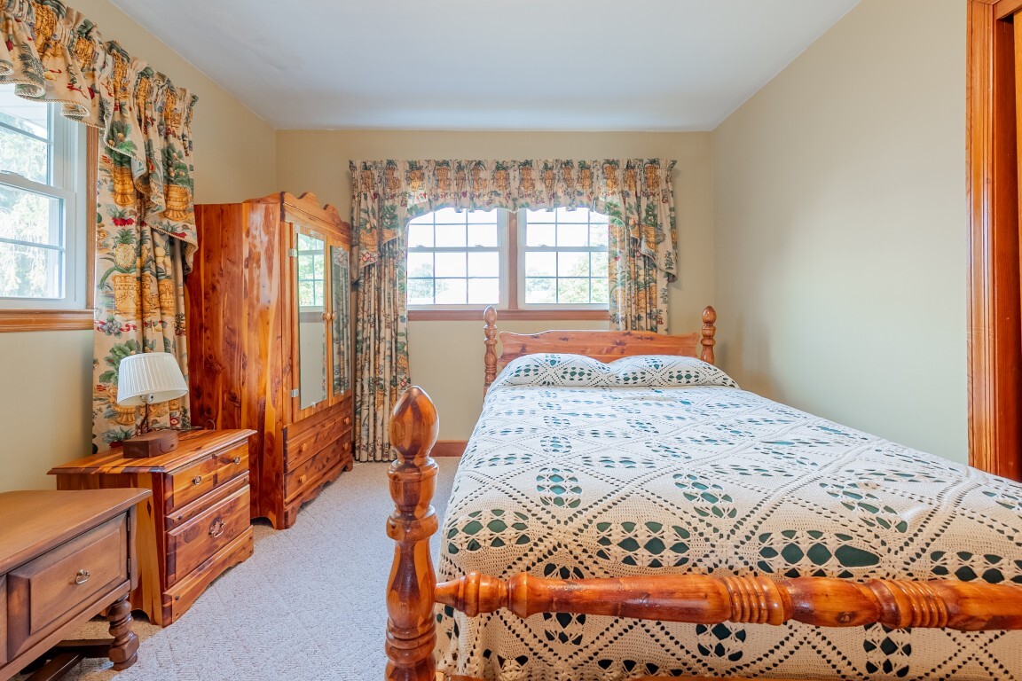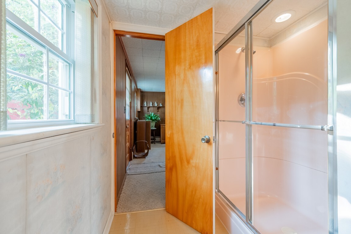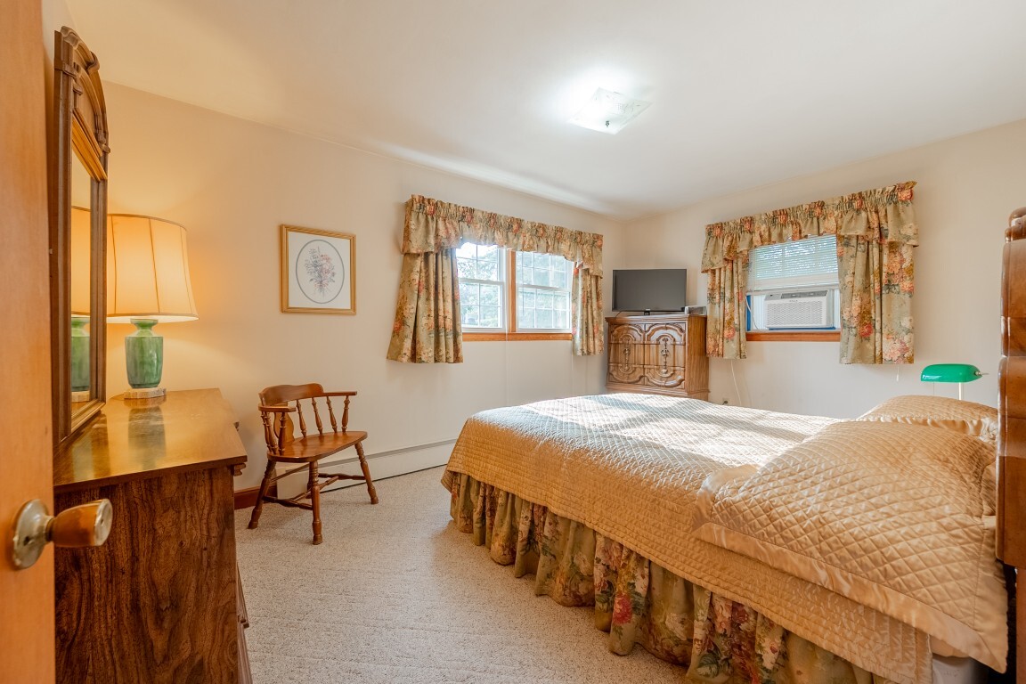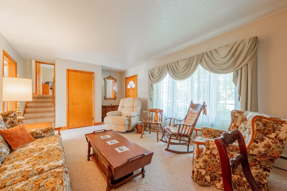A warm and inviting atmosphere begins with a bright living room where large windows flood the space with natural light. The adjacent eat-in kitchen showcases an abundance of cabinetry, charming wood paneling and provides plenty of room for casual dining. Thoughtfully designed, flowing layout offers distinct yet connected spaces, making it easy to move from room to room while maintaining a sense of coziness and comfort.