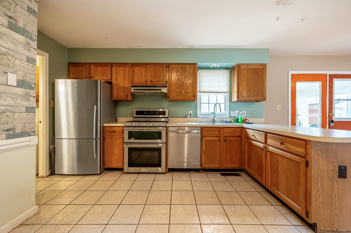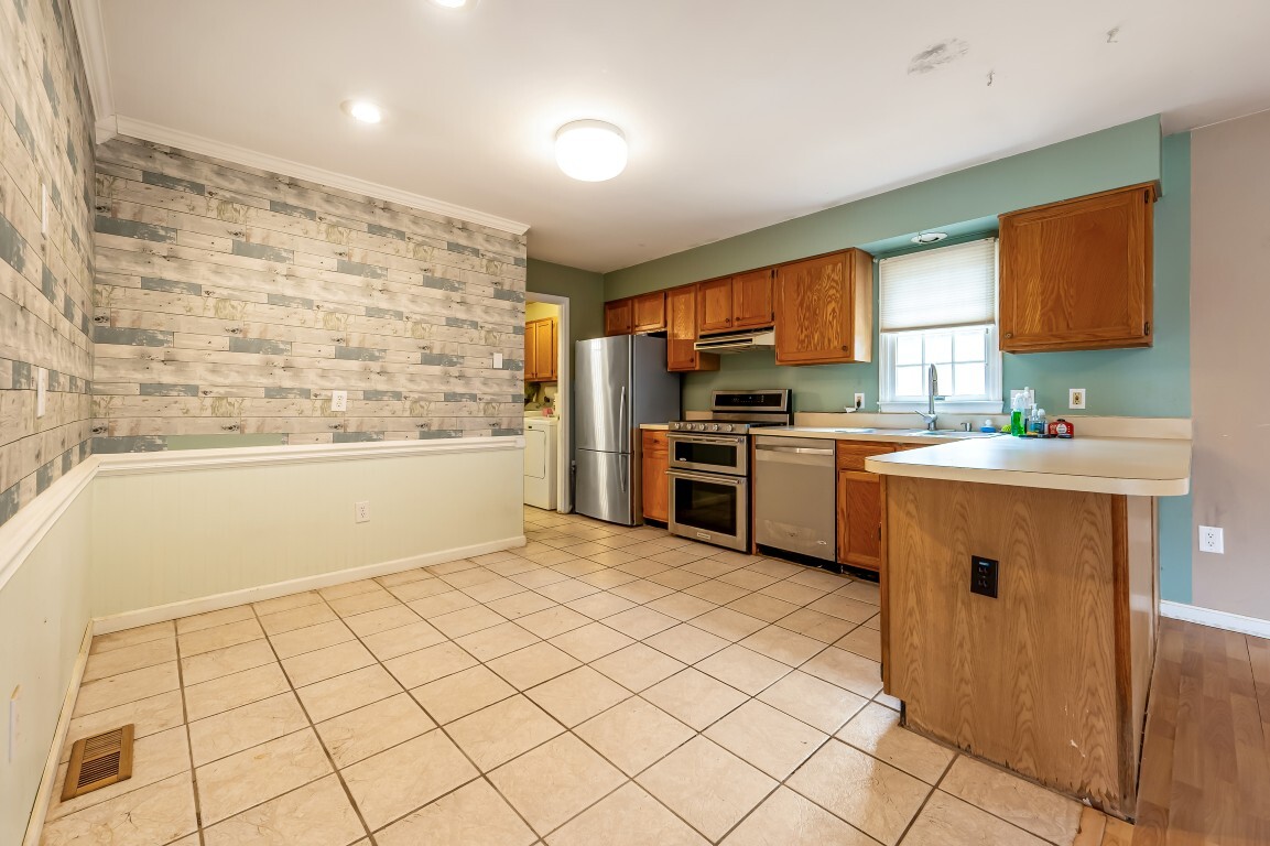 The kitchen offers a generous footprint with incredible potential to become a showpiece with ample workspace and a layout that naturally lends itself to everyday functionality. The breakfast bar creates a welcoming spot for casual meals, after-school snacks, or guests gathering while meals are prepared — the kind of space that keeps everyone together. The connecting dining area easily accommodates a full-sized table and/or a hutch for storage and display. Together, these spaces form a comfortable, central hub of the home where cooking, conversation, and connection happen effortlessly.