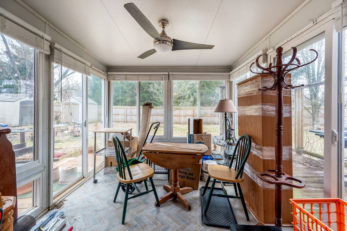 A true bonus space, the sunroom is wrapped in walls of windows that invite natural light to pour in throughout the day. It’s the kind of space that instantly feels uplifting — perfect for slow mornings with coffee in hand, a thriving collection of houseplants, or a cozy reading retreat. With just a little vision, this bright and cheerful room could easily become one of your favorite spots.