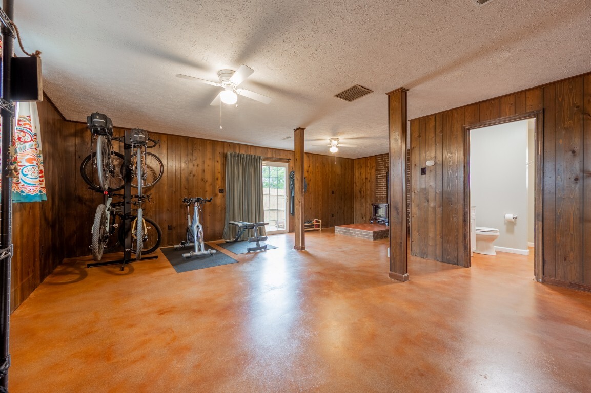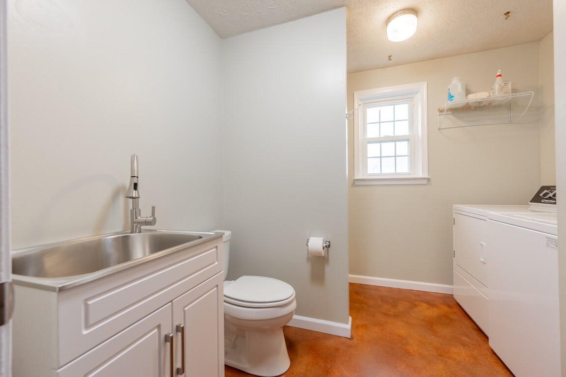 Head downstairs to the basement, where the recently acid-stained copper floors gleam with character and warmth for a stylish yet versatile canvas for your imagination. Whether you envision a lively recreation area, a cozy home office, or a serene extra living space, this area adapts beautifully to your needs. A full bath with a convenient laundry setup adds both practicality and comfort, making it an ideal retreat for guests, in-laws, or a teenager’s private hangout. Sliding doors lead to the newly privacy fenced side patio that opens to the chain linked fenced area perfect for the kids and pets to safely play. The 1-acre lot provides space for all your outdoor hobbies, plus a detached shed for equipment, tools and toys. The driveway has been recently sealed and the landscaping has been thoughtfully maintained, opening up those long-range views and creating a serene outdoor setting.
