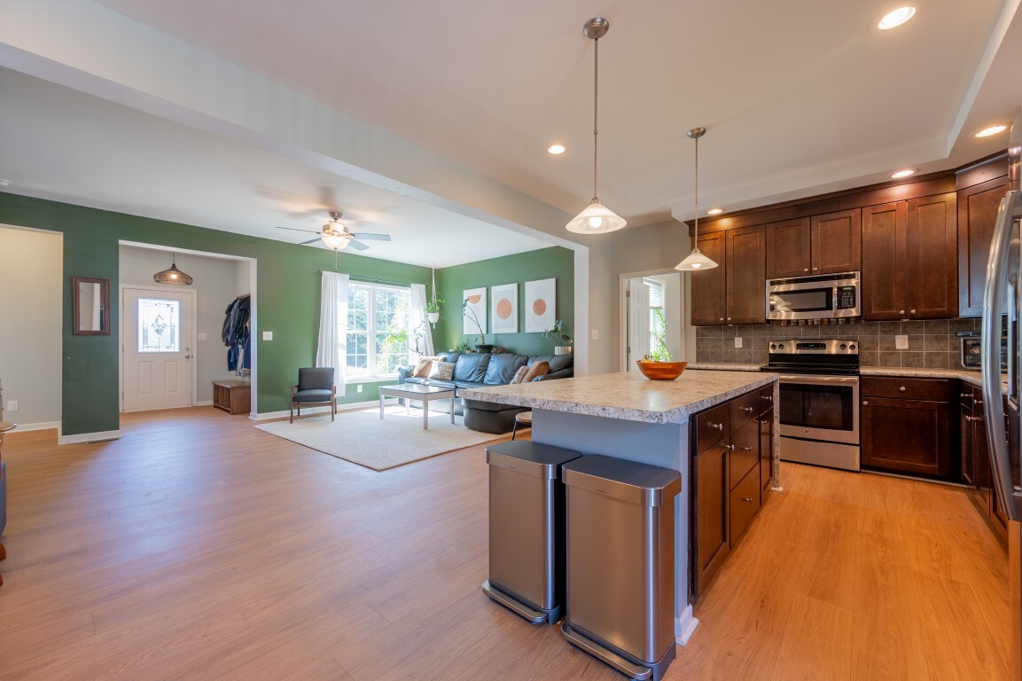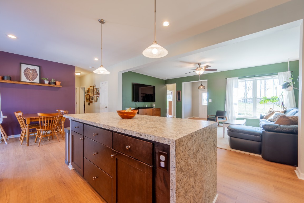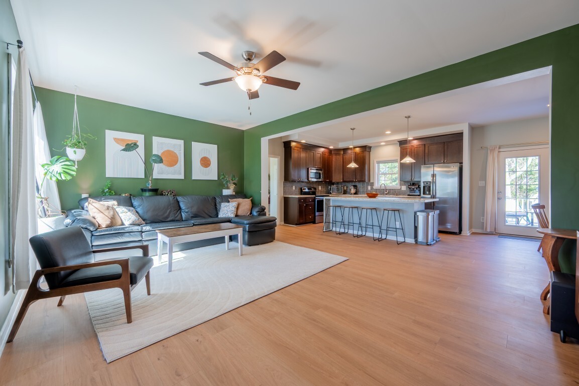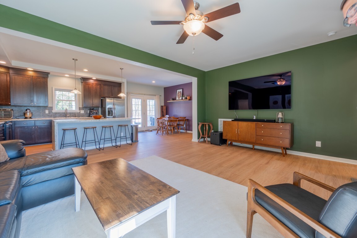 Step inside and feel the openness unfold, where beautiful luxury vinyl plank flooring flows seamlessly throughout the entire home, creating a cohesive and inviting foundation. The open-concept is designed to bring people together, making both everyday living and entertaining feel effortless. Natural light pours in through large windows, filling the living room with warmth and energy, making it the perfect setting for cozy evenings, lively gatherings, or simply soaking in the peaceful beauty that surrounds you.