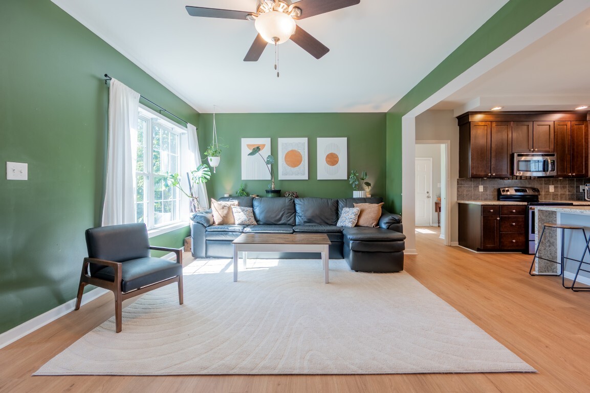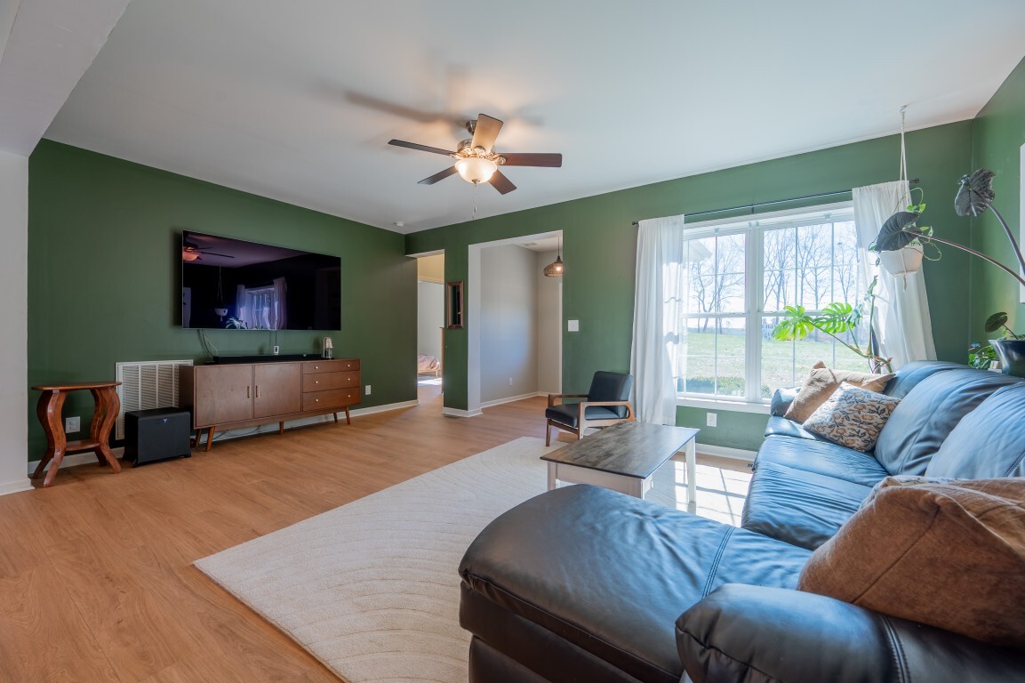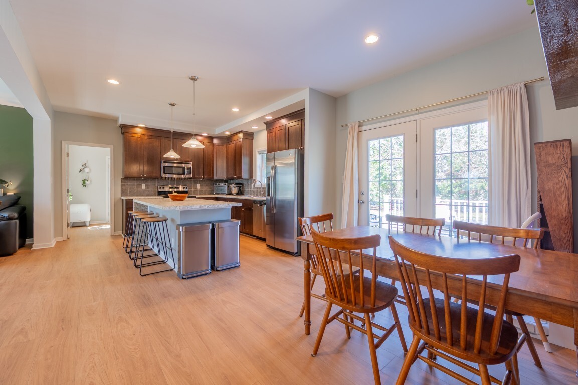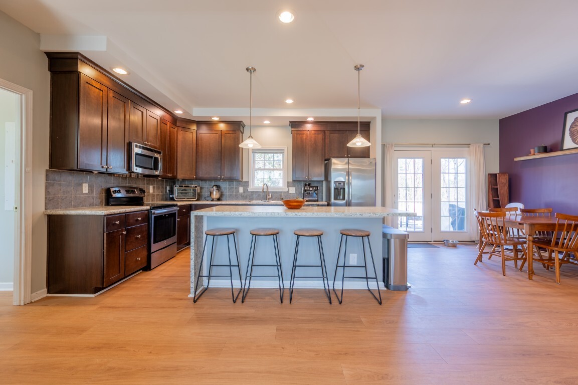 Step inside and feel the openness unfold, where beautiful luxury vinyl plank flooring flows seamlessly throughout the entire home, creating a cohesive and inviting foundation. The open-concept is designed to bring people together, making both everyday living and entertaining feel effortless. Natural light pours in through large windows, filling the living room with warmth and energy, making it the perfect setting for cozy evenings, lively gatherings, or simply soaking in the peaceful beauty that surrounds you.