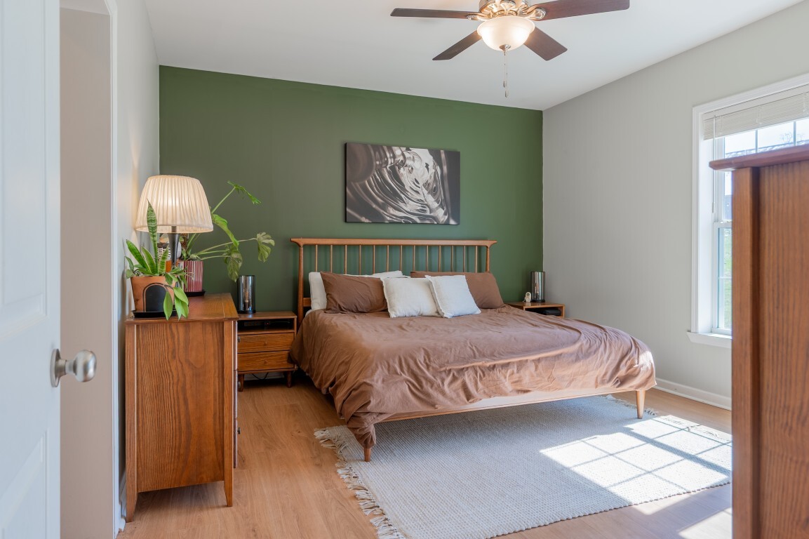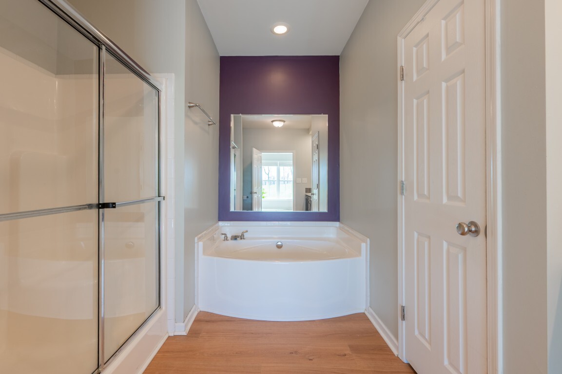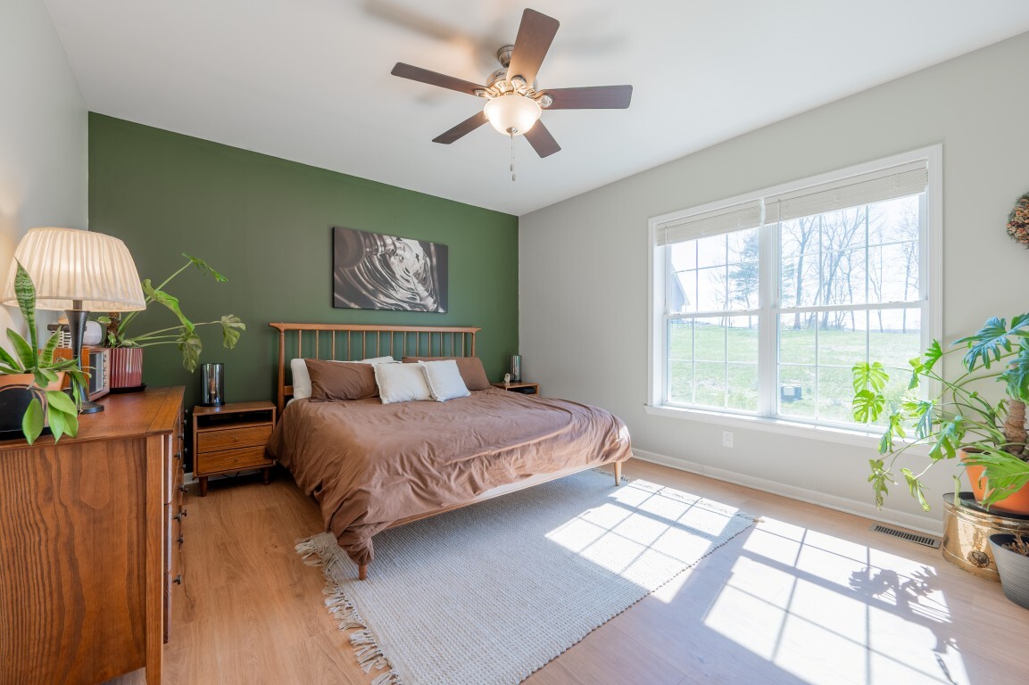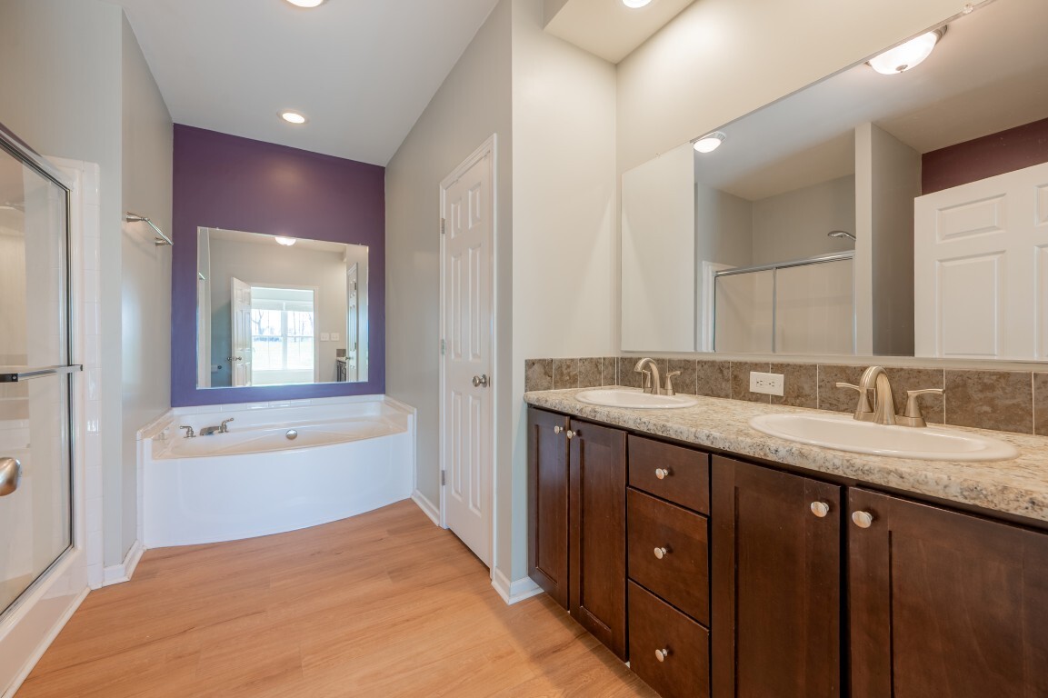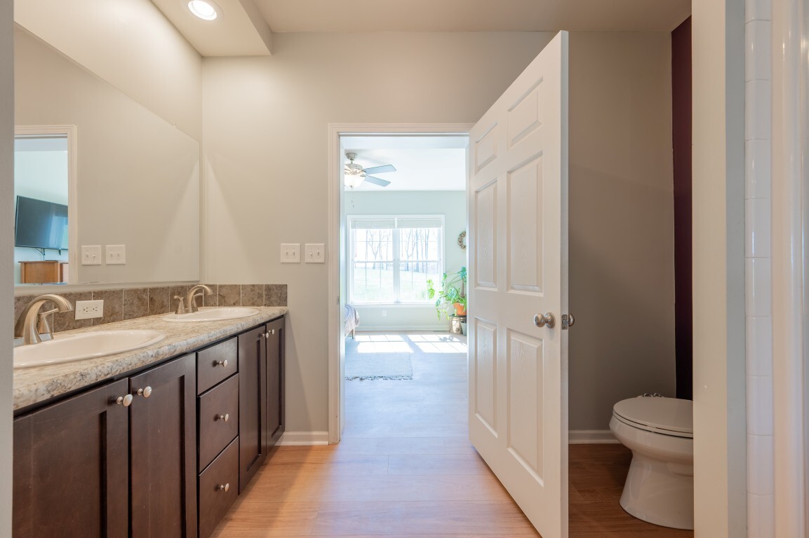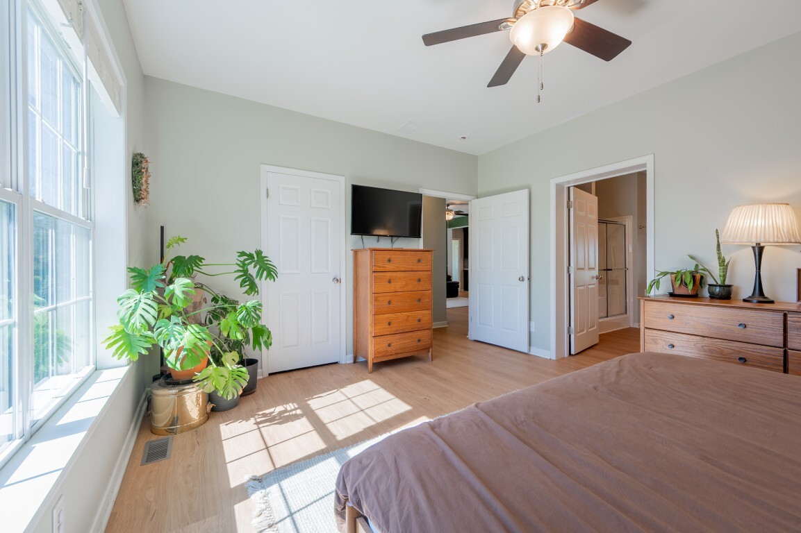 Your private primary retreat is a peaceful escape at the end of the day, with ample space to unwind under a cooling ceiling fan. The ensuite bathroom feels like a personal spa with its soaking tub, separate shower, and dual sink vanity—perfect for both relaxation and everyday convenience.