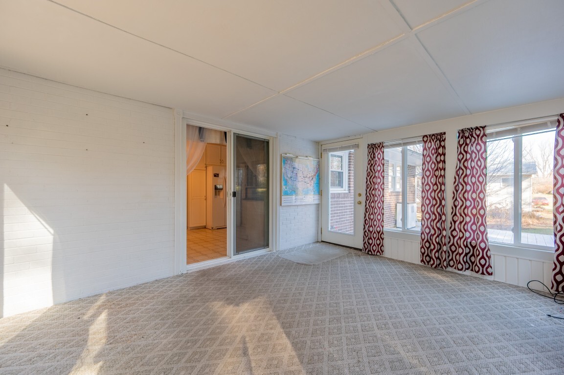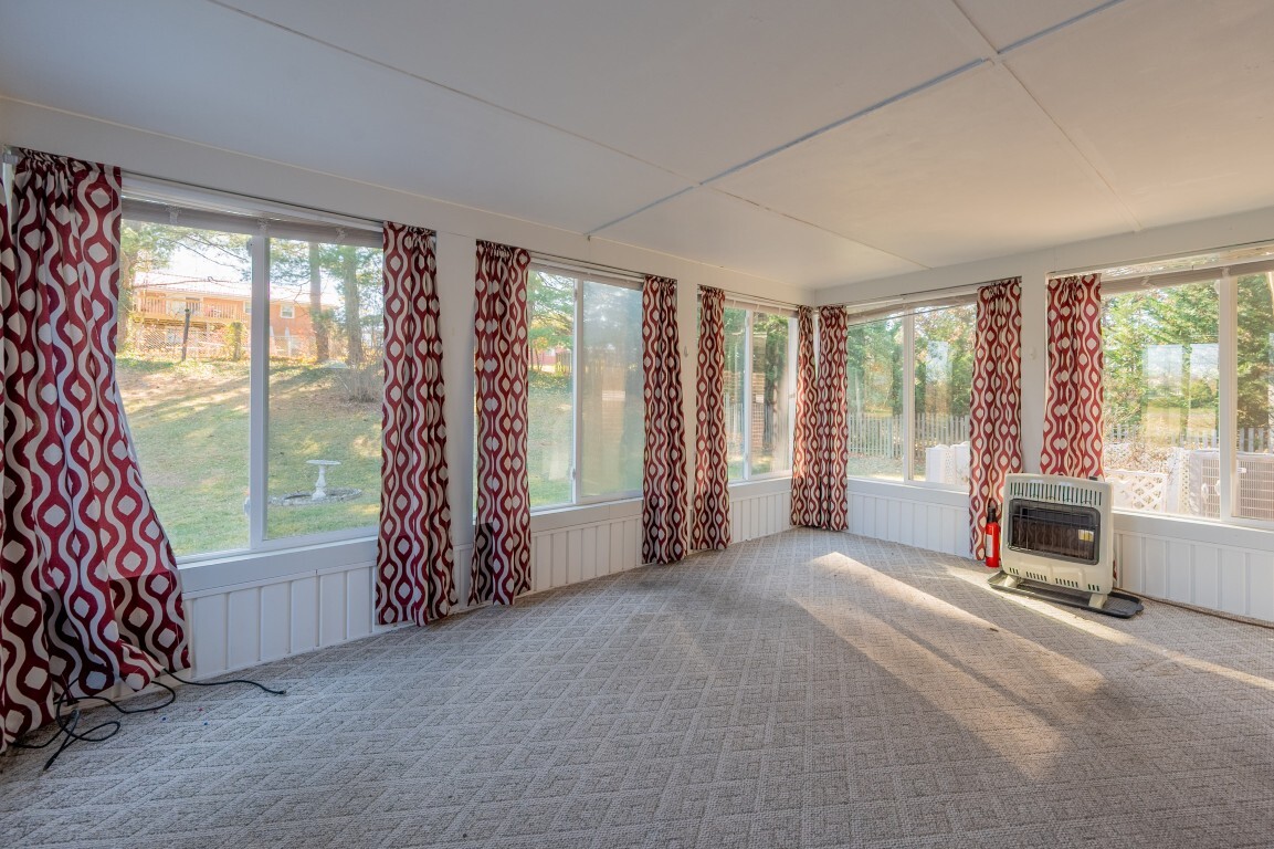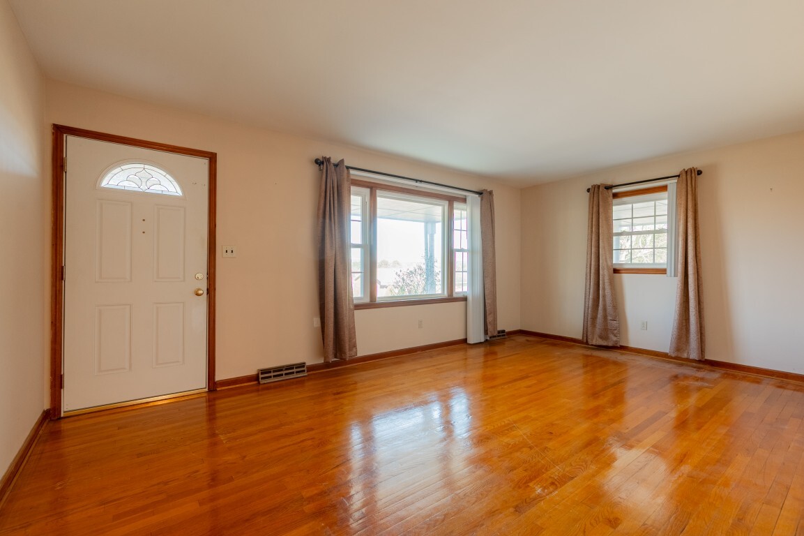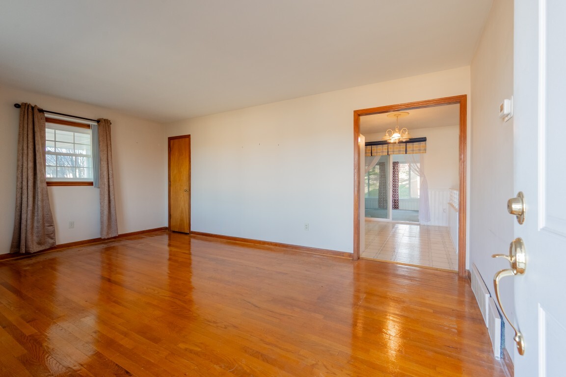 Step inside to discover a bright and inviting layout, starting with a living room bathed in natural light from a large picture window, showcasing gleaming hardwood floors and offering plenty of options for furniture arrangement. The space flows seamlessly into an eat-in kitchen, thoughtfully designed with abundant cabinetry, generous counter space, a pantry, and a full suite of appliances ready for culinary creations. Sliding doors lead to the spacious sunroom, where walls of windows let you enjoy the outdoors year-round without the worry of insects or unpredictable weather, creating the perfect spot for morning coffee, relaxing, or entertaining guests.