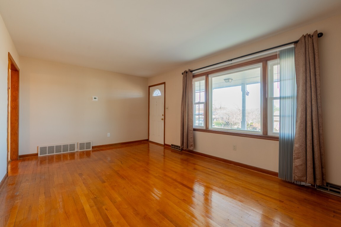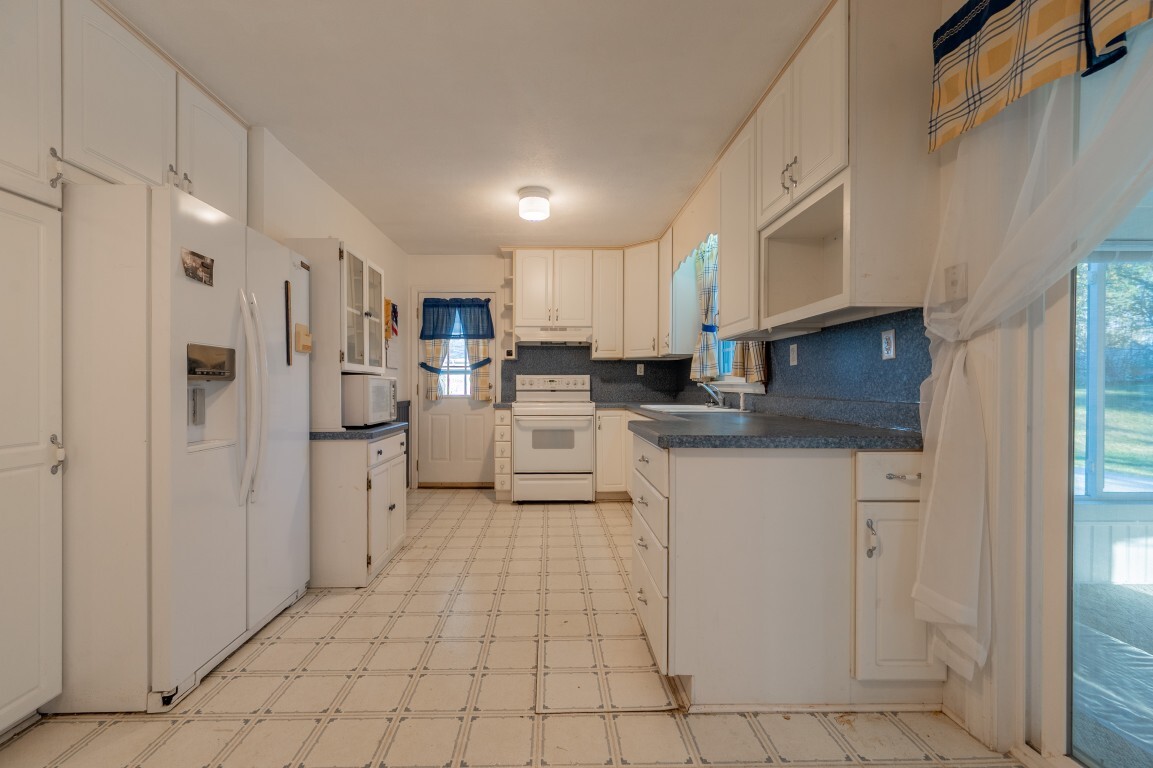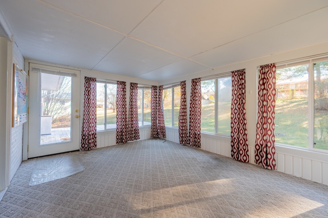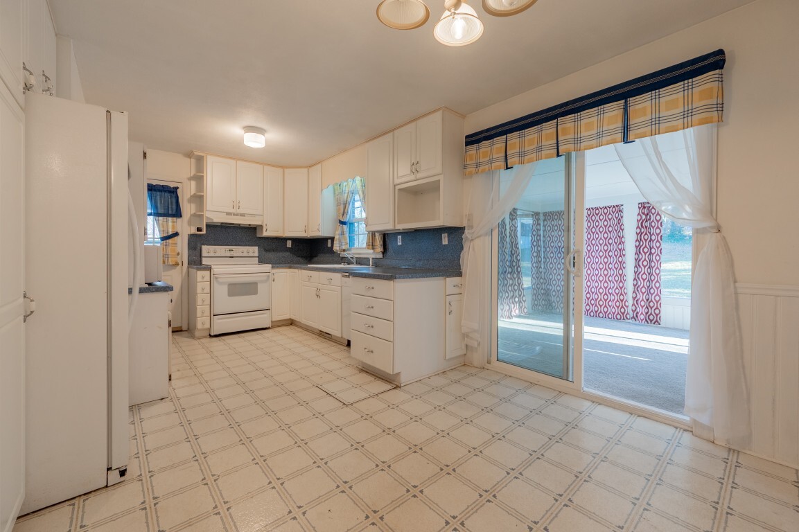 Step inside to discover a bright and inviting layout, starting with a living room bathed in natural light from a large picture window, showcasing gleaming hardwood floors and offering plenty of options for furniture arrangement. The space flows seamlessly into an eat-in kitchen, thoughtfully designed with abundant cabinetry, generous counter space, a pantry, and a full suite of appliances ready for culinary creations. Sliding doors lead to the spacious sunroom, where walls of windows let you enjoy the outdoors year-round without the worry of insects or unpredictable weather, creating the perfect spot for morning coffee, relaxing, or entertaining guests.