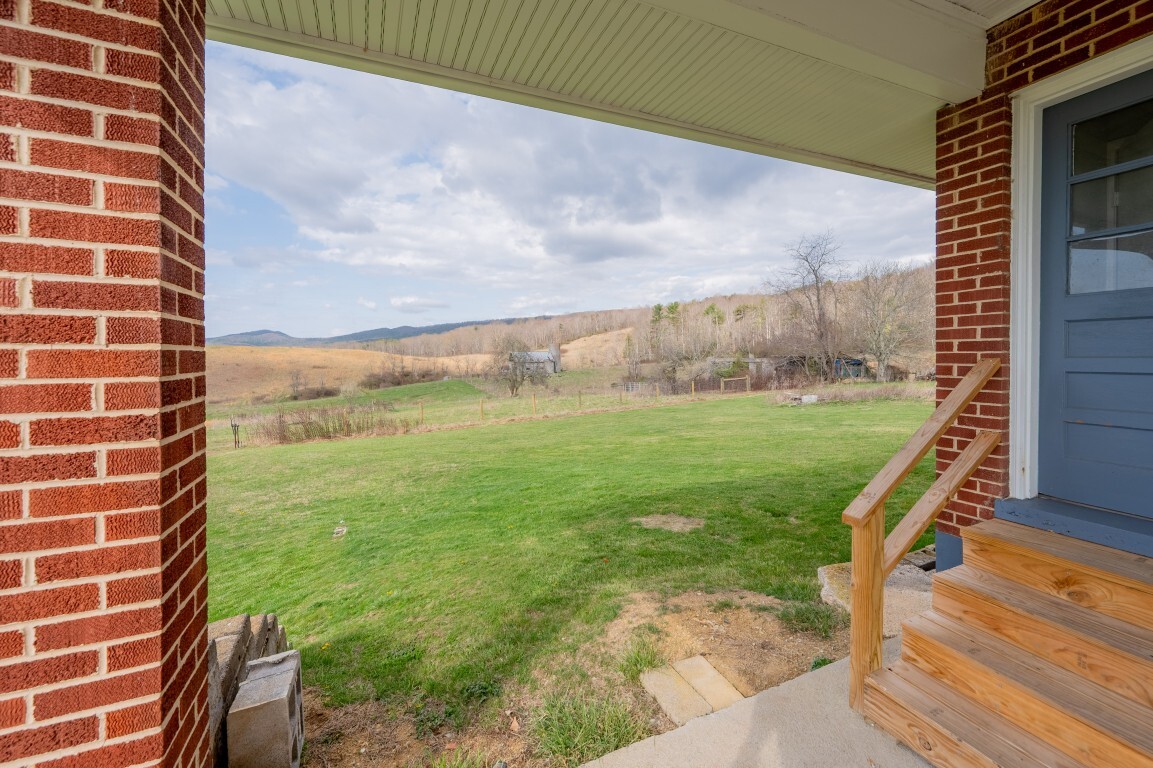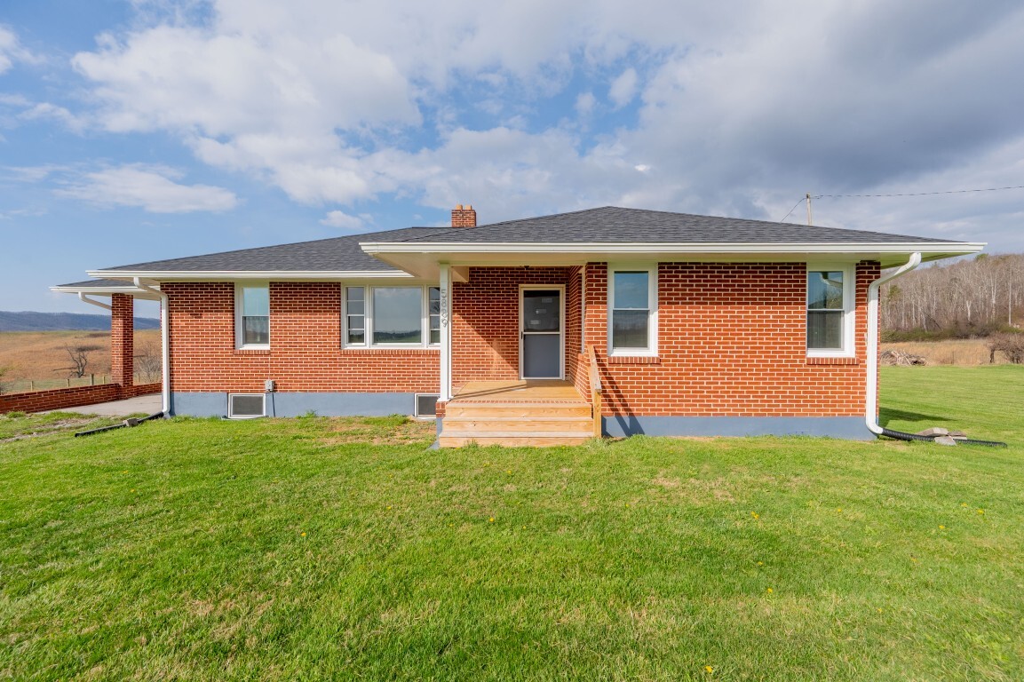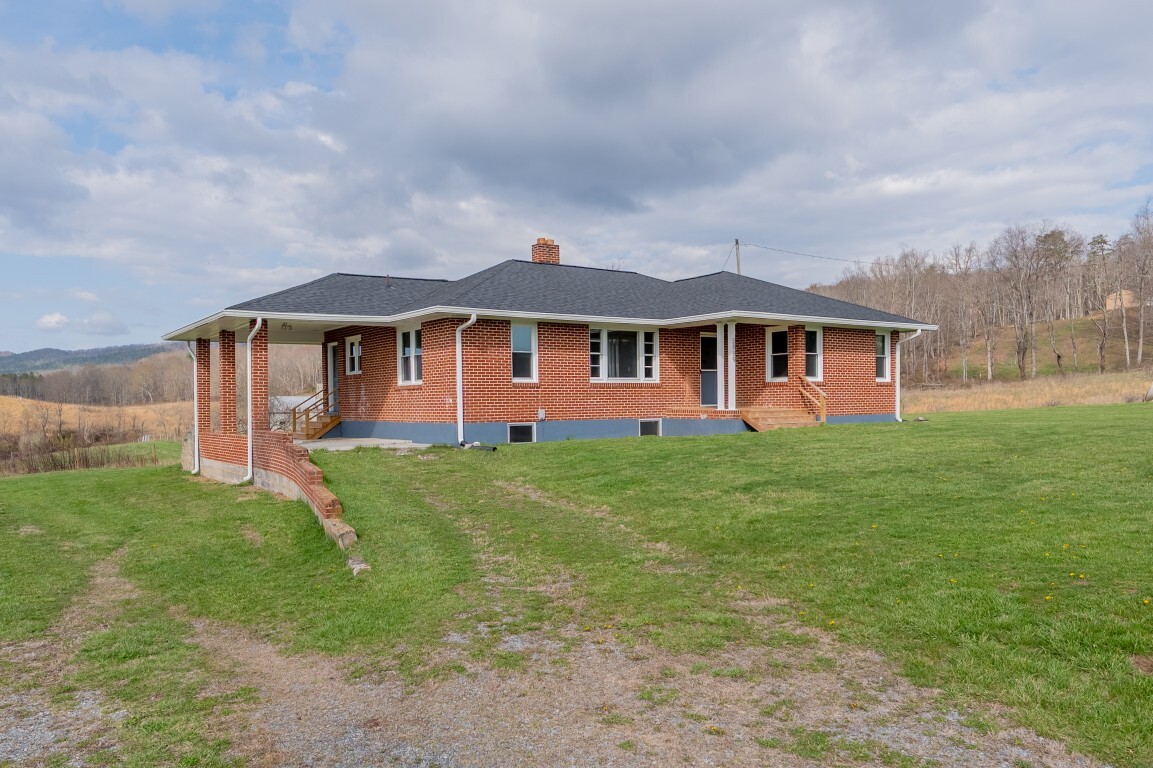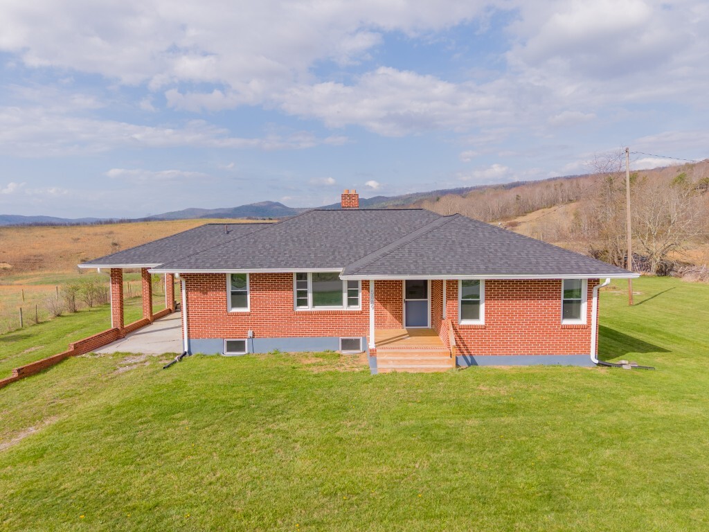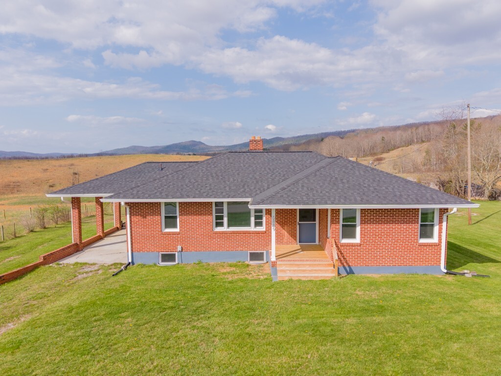 Tucked into the peaceful countryside and surrounded by rolling land and scenic mountain views, this charming all-brick home invites you to slow down, breathe deeper, and truly feel at home. Thoughtfully updated for peace of mind, the home features a brand-new roof and gutters, along with updated windows, electrical panel box, and water heater within the past two years—blending timeless construction with modern reliability. From the moment you arrive, the covered front porch sets the tone—a quiet place to sip your morning coffee and take in the breathtaking landscape.