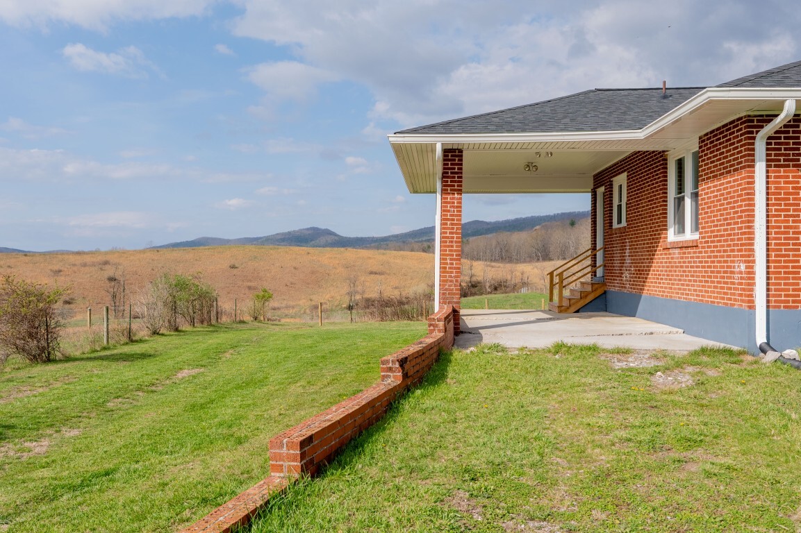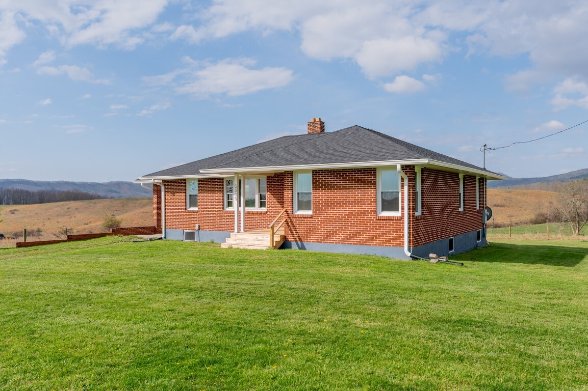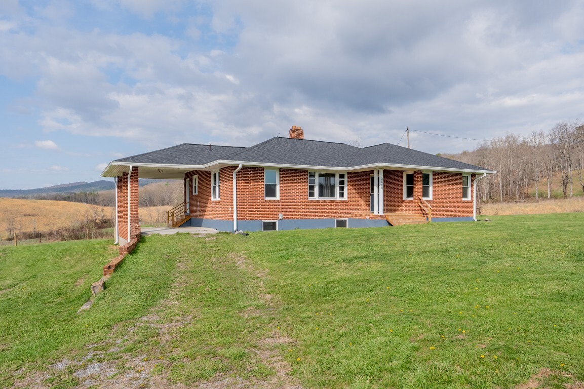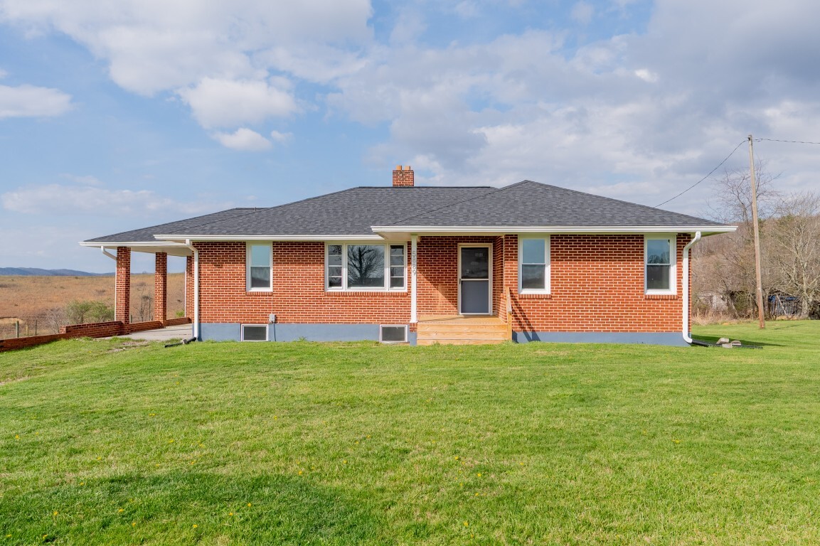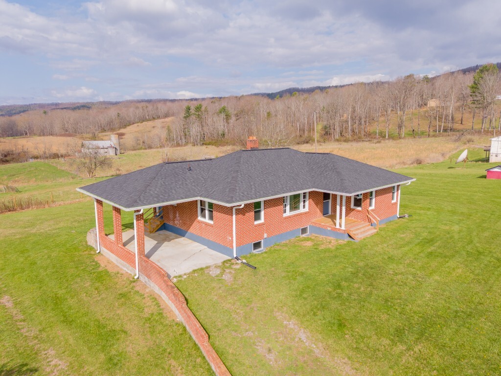 Tucked into the peaceful countryside and surrounded by rolling land and scenic mountain views, this charming all-brick home invites you to slow down, breathe deeper, and truly feel at home. Thoughtfully updated for peace of mind, the home features a brand-new roof and gutters, along with updated windows, electrical panel box, and water heater within the past two years—blending timeless construction with modern reliability. From the moment you arrive, the covered front porch sets the tone—a quiet place to sip your morning coffee and take in the breathtaking landscape.