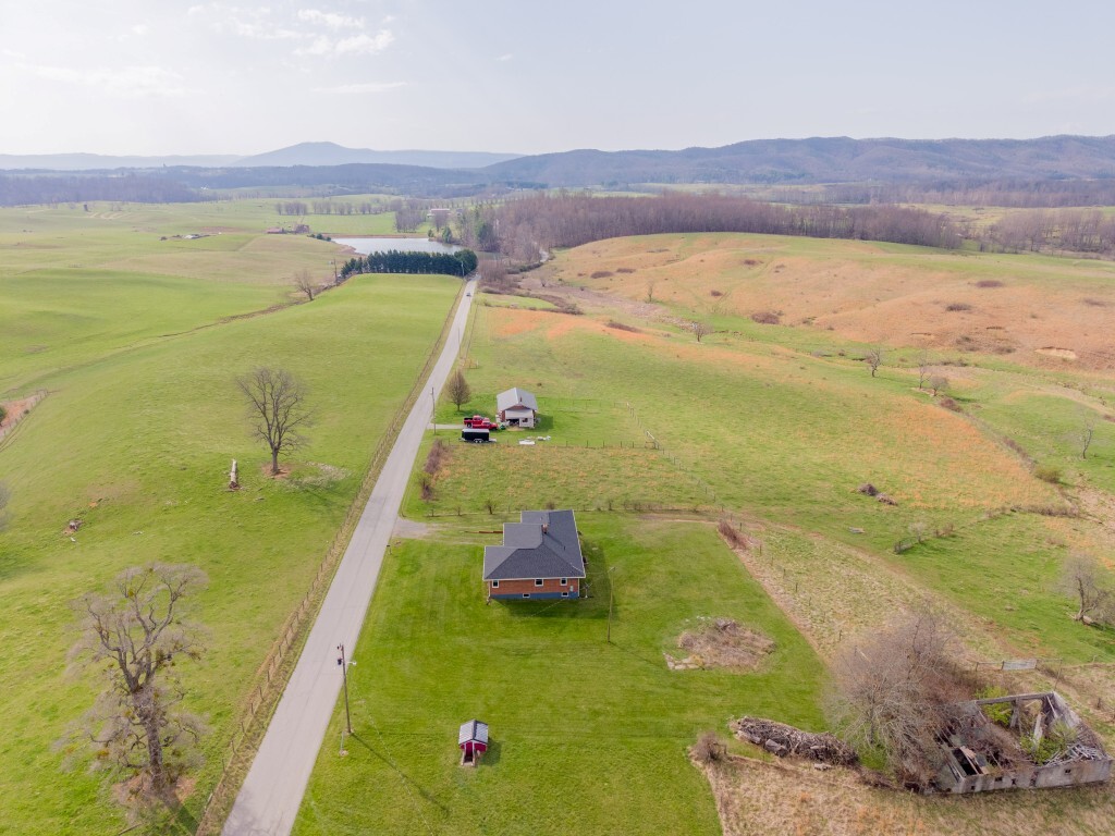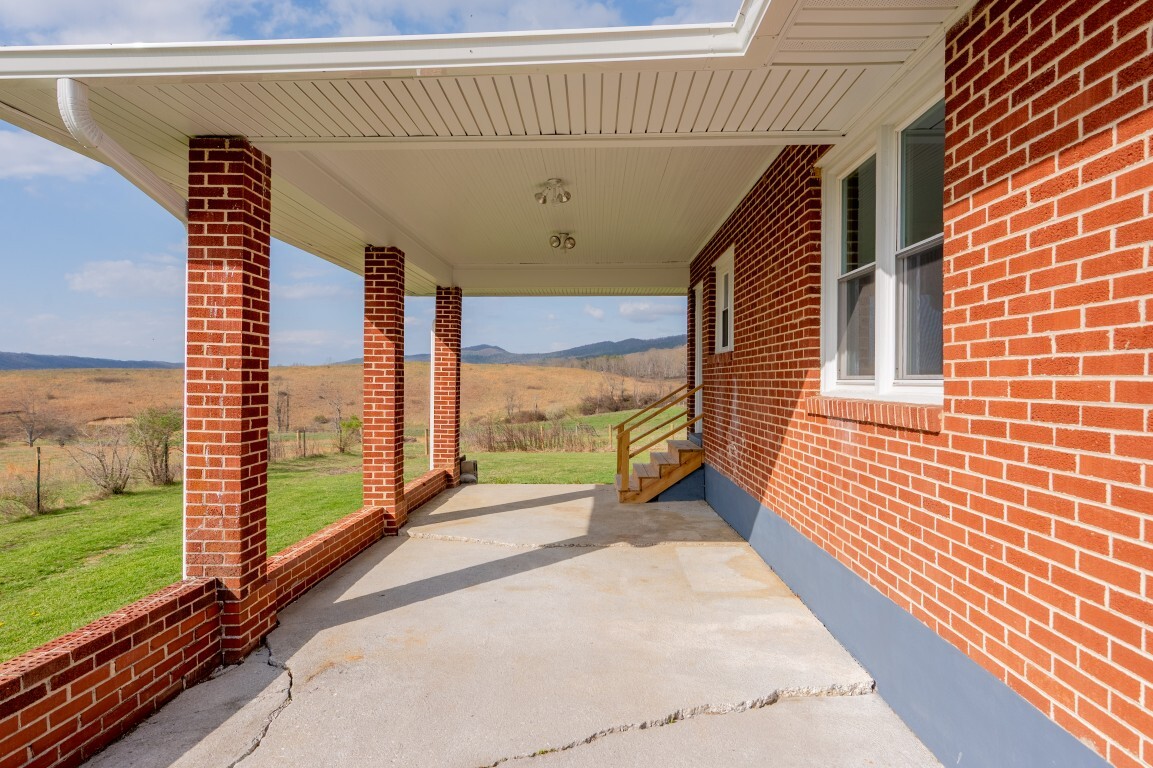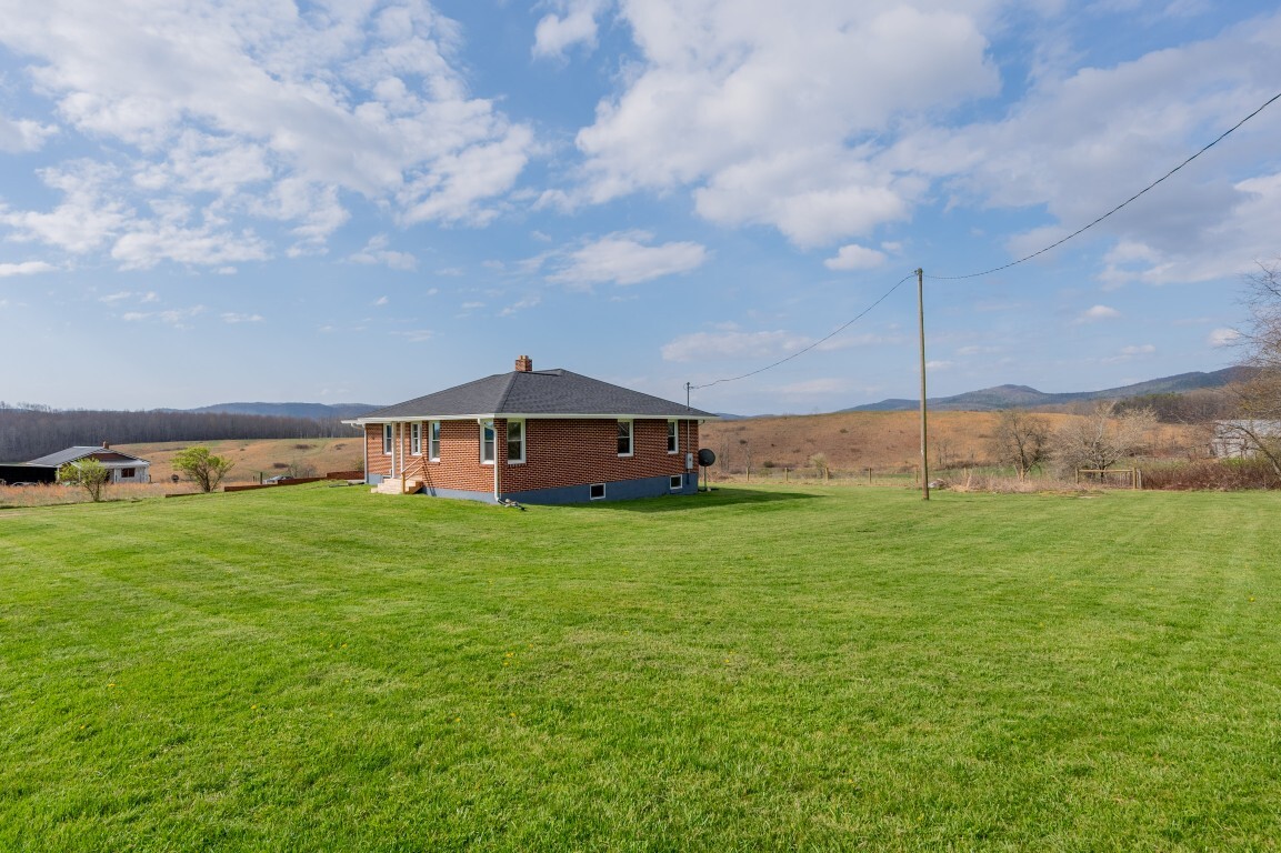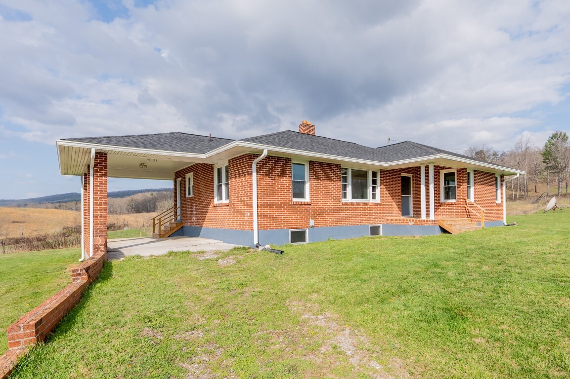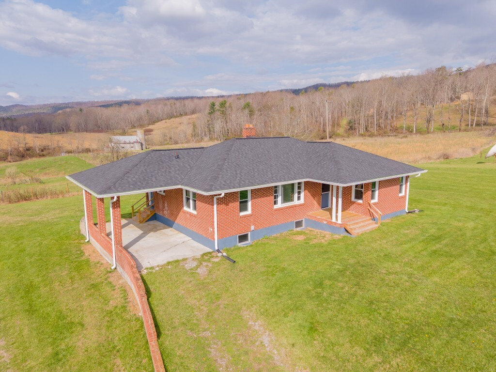 Tucked into the peaceful countryside and surrounded by rolling land and scenic mountain views, this charming all-brick home invites you to slow down, breathe deeper, and truly feel at home. Thoughtfully updated for peace of mind, the home features a brand-new roof and gutters, along with updated windows, electrical panel box, and water heater within the past two years—blending timeless construction with modern reliability. From the moment you arrive, the covered front porch sets the tone—a quiet place to sip your morning coffee and take in the breathtaking landscape.