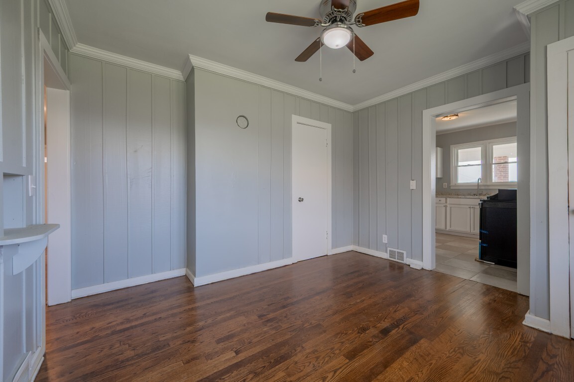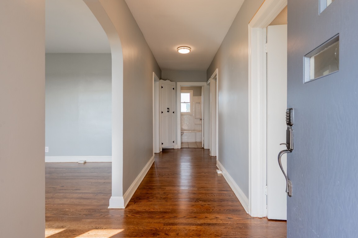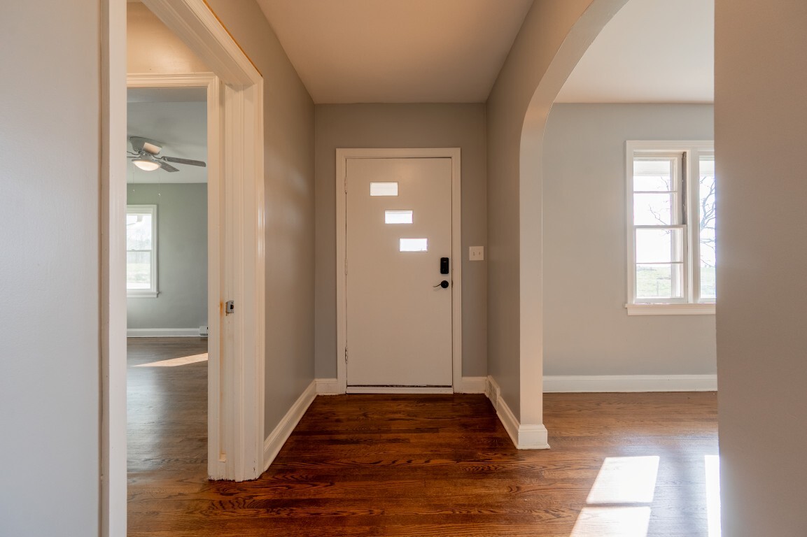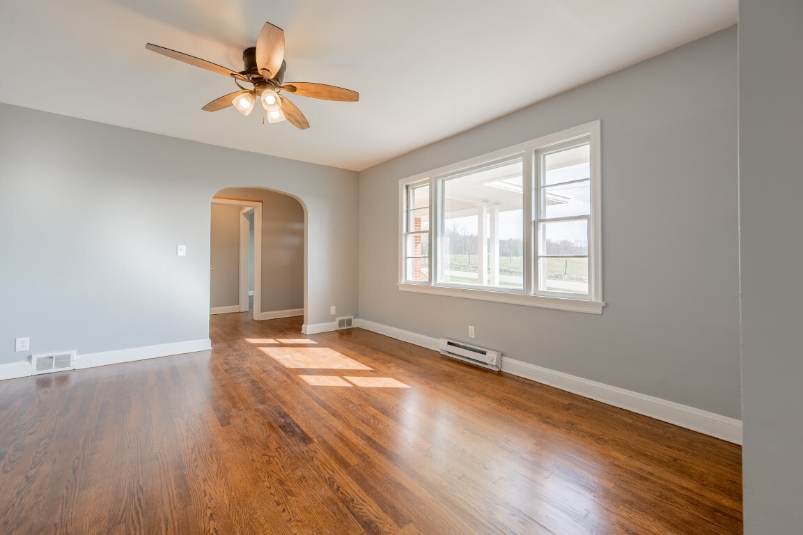 Just beyond, the dining room is framed by charming arched doorways that add character and architectural interest. This space feels inviting and intimate, well-suited for everything from casual dinners to holiday gatherings while remaining connected to the home’s natural flow.