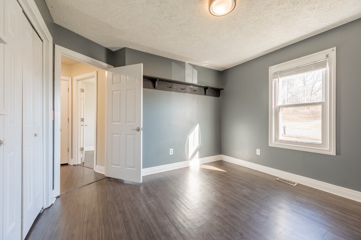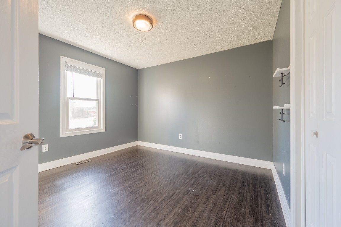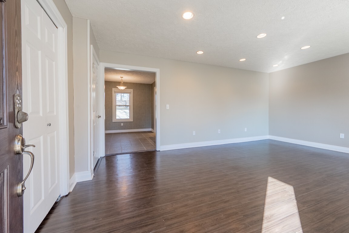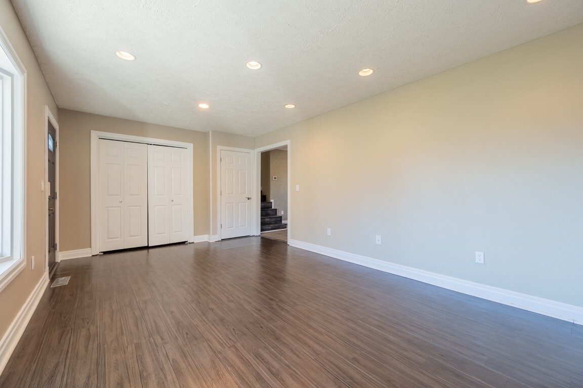 The spacious living room is bathed in natural light thanks to a beautiful bay window, creating a warm and welcoming atmosphere. Luxury vinyl plank flooring adds both style and easy maintenance, while the generous layout offers multiple furniture arrangements for comfortable everyday living.
