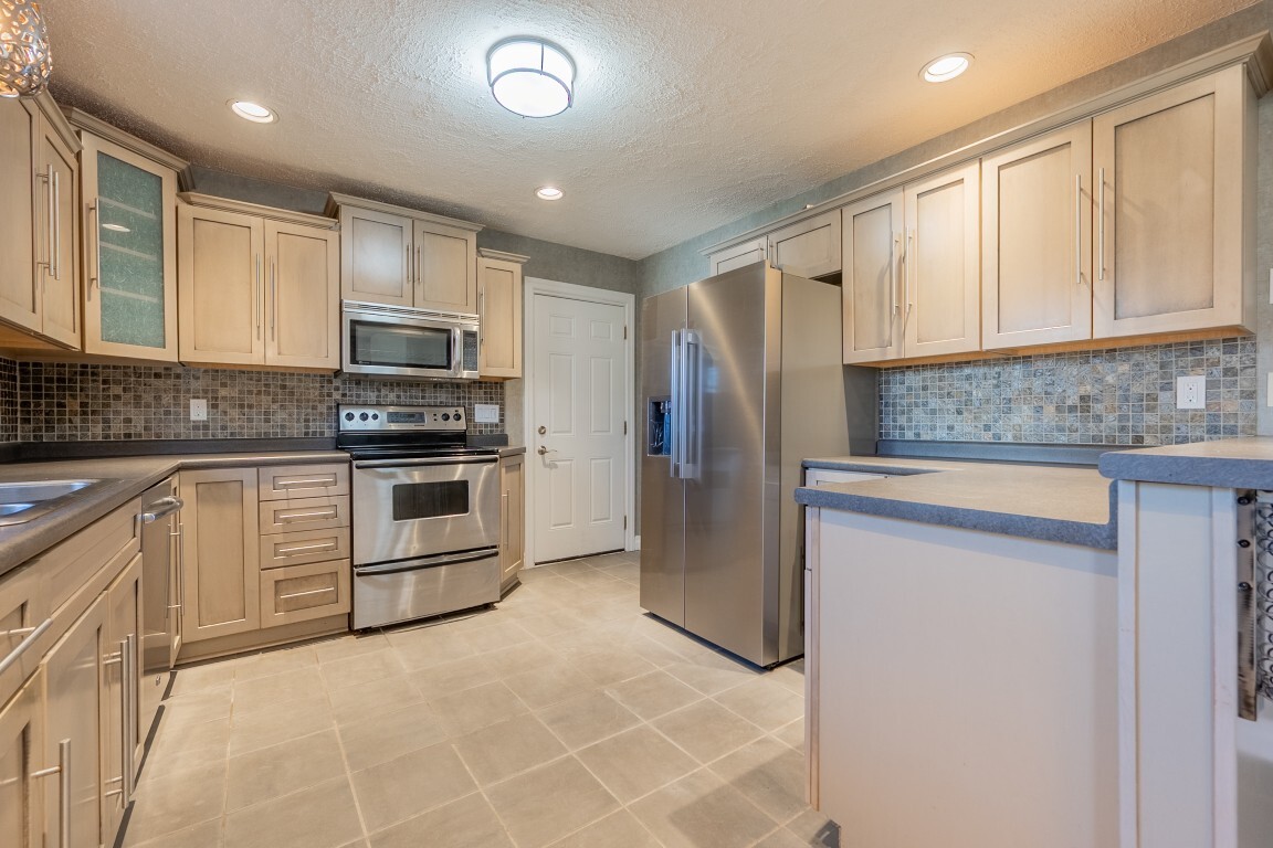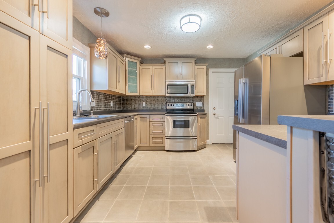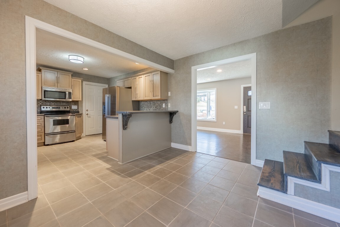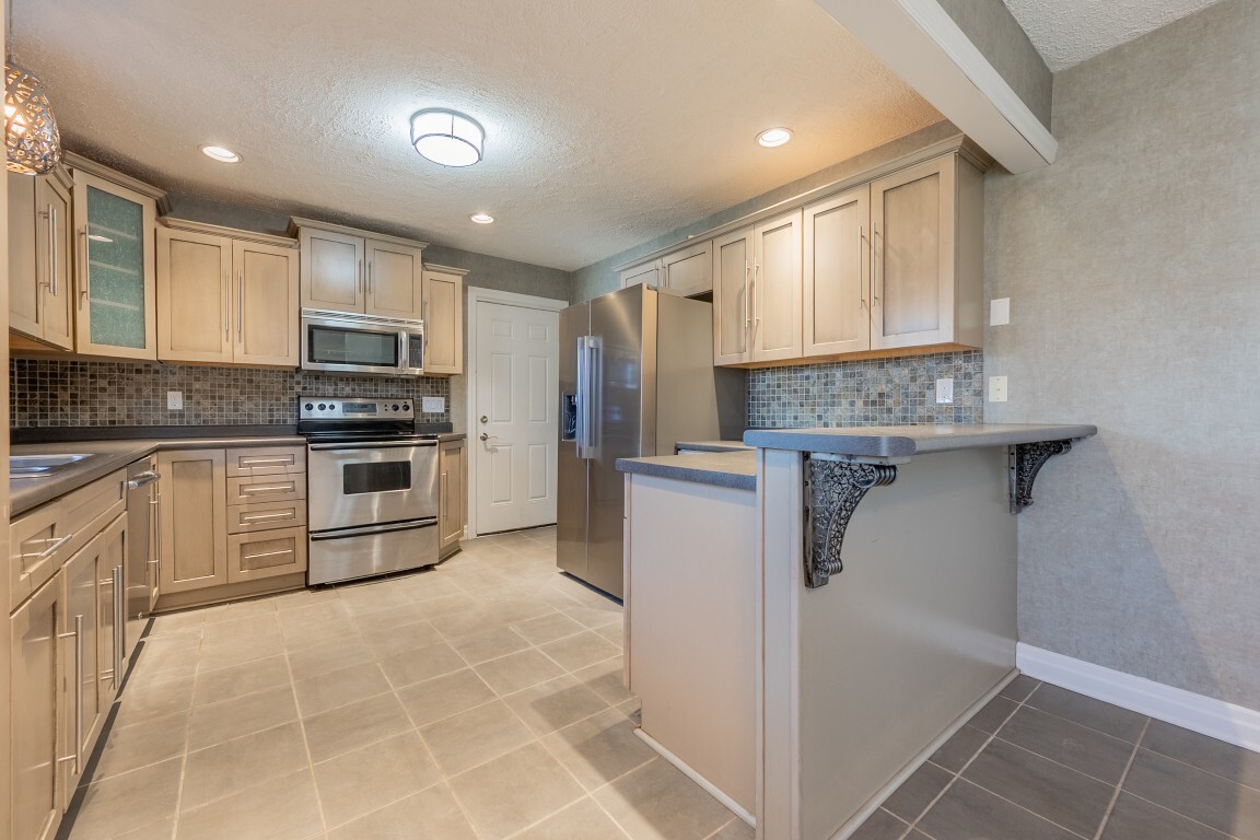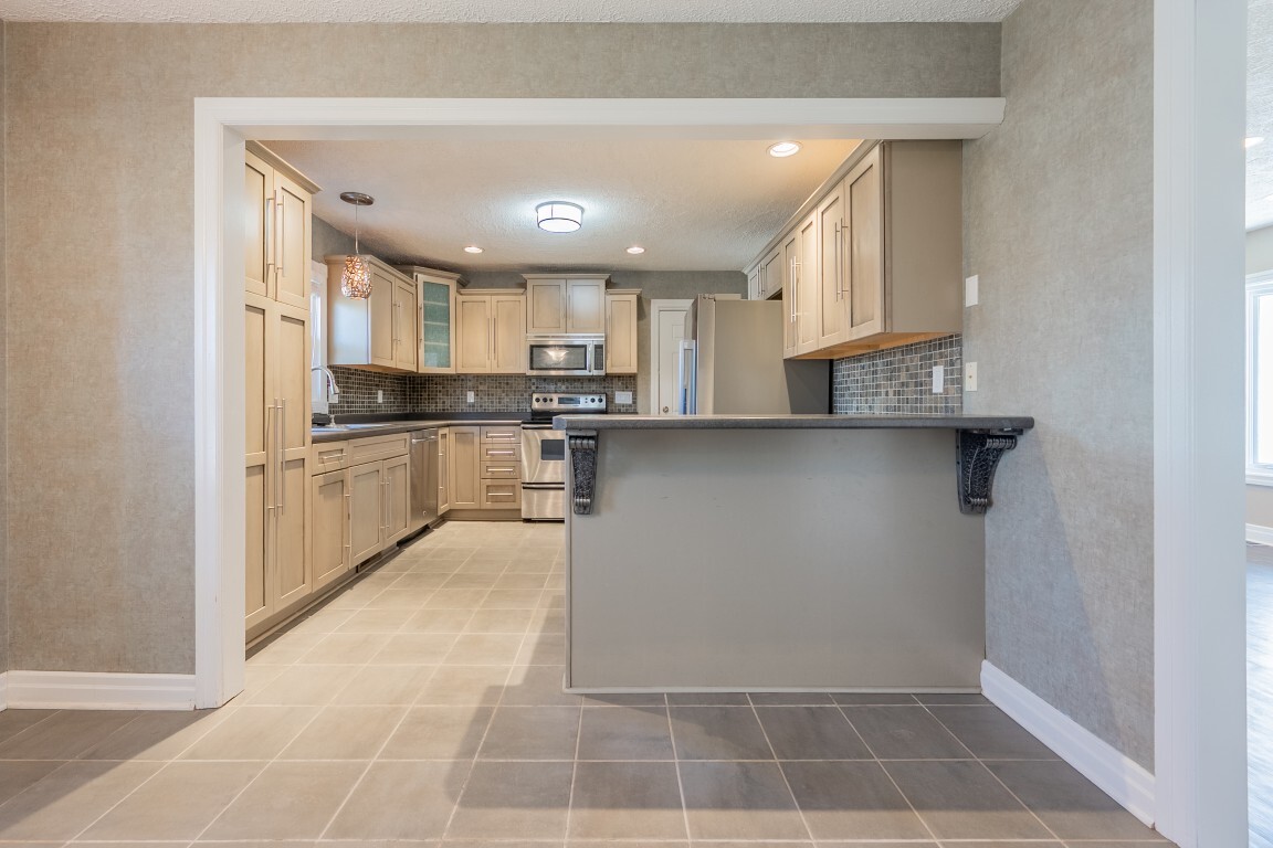 The renovated kitchen is a true standout—so inviting your friends may suddenly “forget” they already ate! A full suite of stainless-steel appliances is complemented by an abundance of beautiful cabinetry, a stylish tile backsplash, and sparkling countertops, creating an inspiring space for the chef in your household. The modern layout offers plenty of room to cook, gather, and entertain, while the adjoining dining area with breakfast bar seating keeps everyone connected. Direct access to the attached single-car garage adds everyday convenience, making grocery trips a breeze.