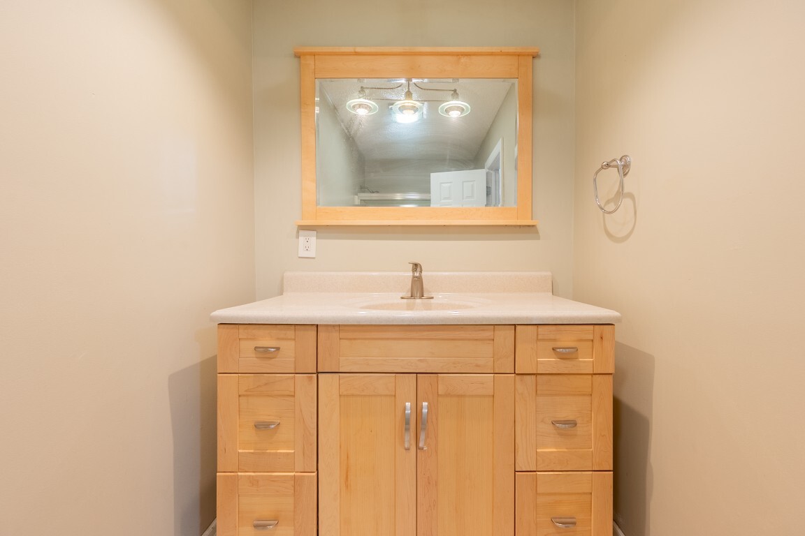 Up a short staircase, you will find three generously sized bedrooms, including a comfortable primary suite with its own private bath—perfect for unwinding at the end of the day. A well-appointed second full bathroom serves the remaining bedrooms with ease.