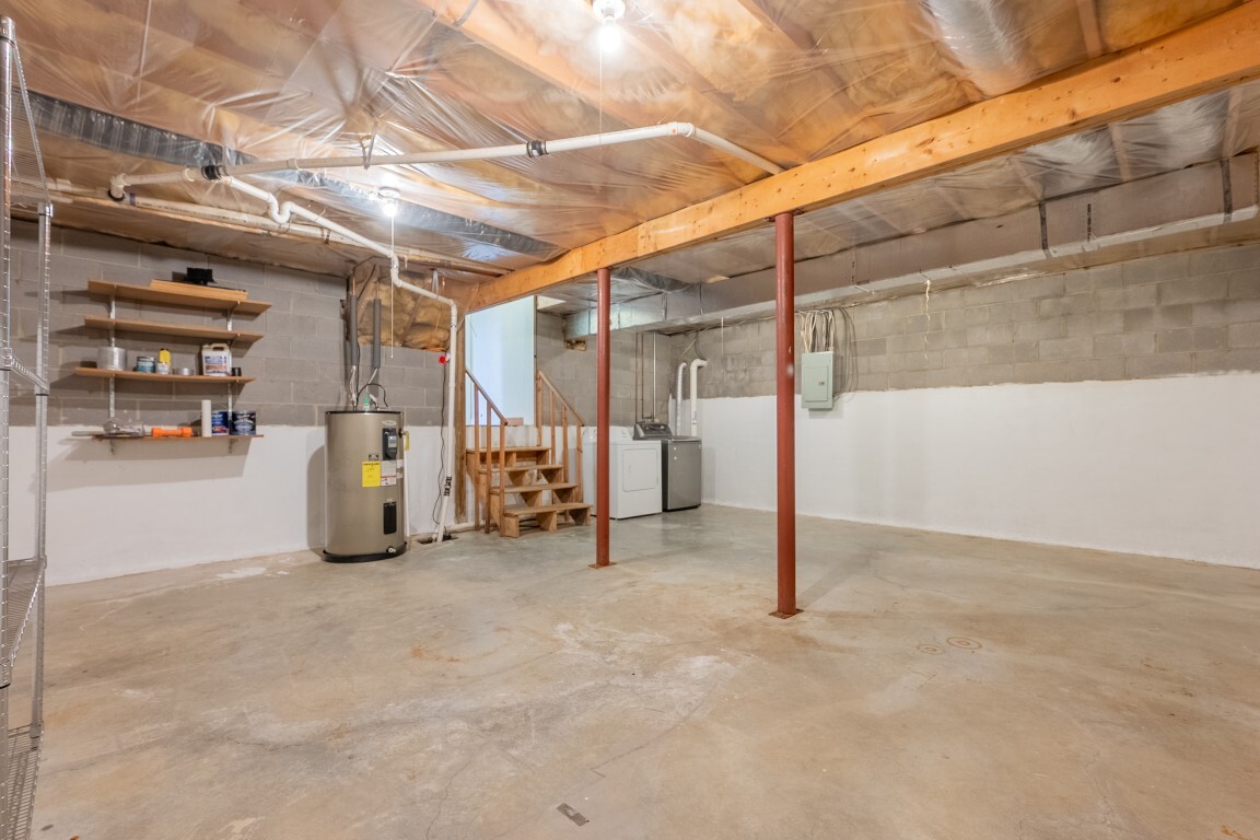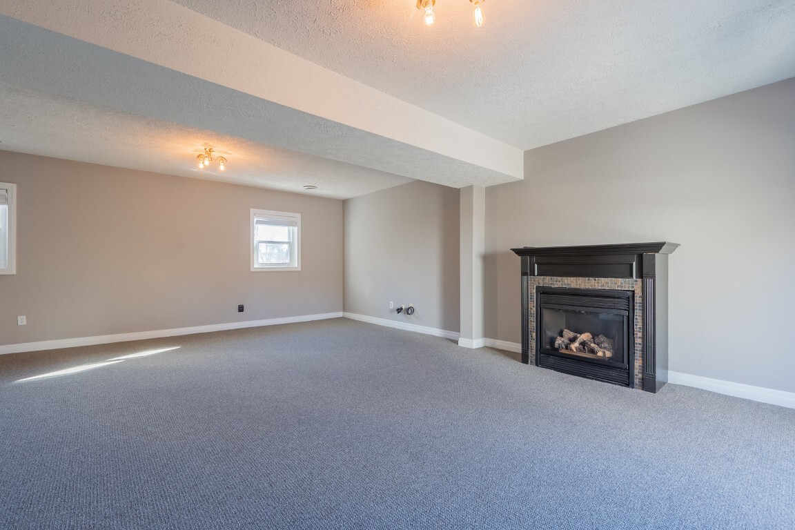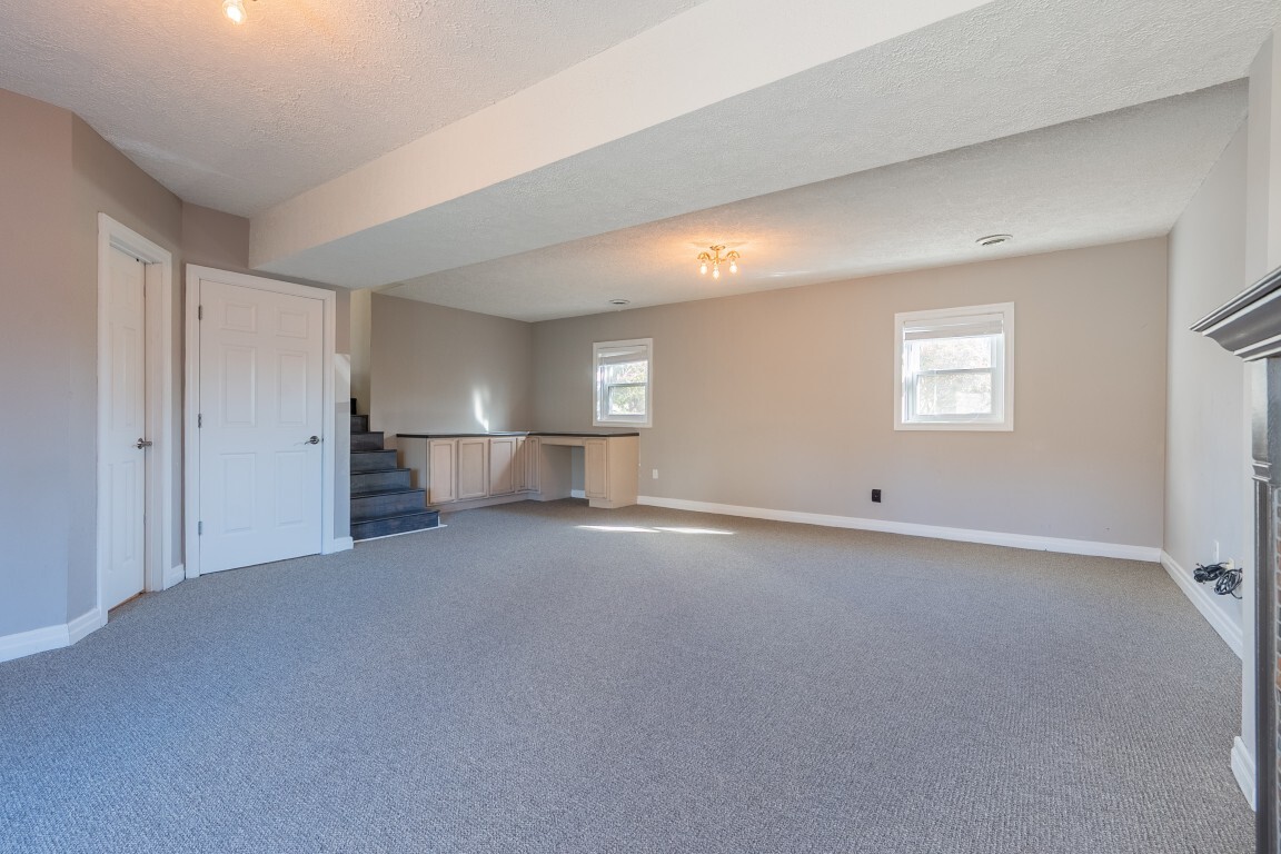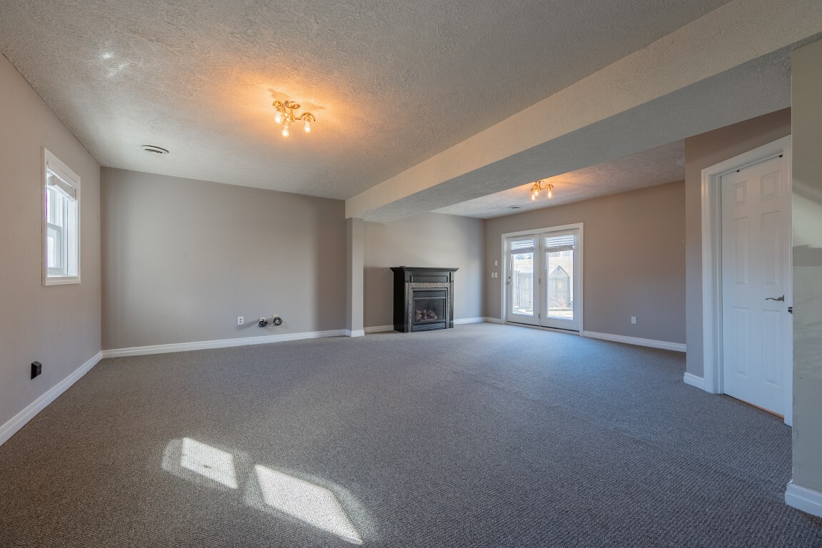 An expansive lower-level family room delivers versatile living space that easily adapts to your needs—whether for movie nights, a home office, a playroom, or a private space for hosting visiting guests. The gas log fireplace creates a cozy gathering spot, and French doors lead to the patio and generous backyard beyond. A nearby unfinished basement offers abundant storage or the opportunity to expand, complete with an existing laundry area. An unfinished basement allows for future customization or ample storage, with laundry already established.