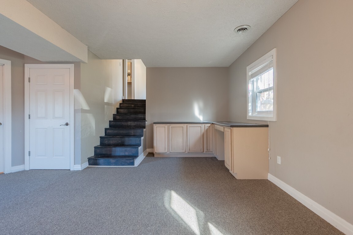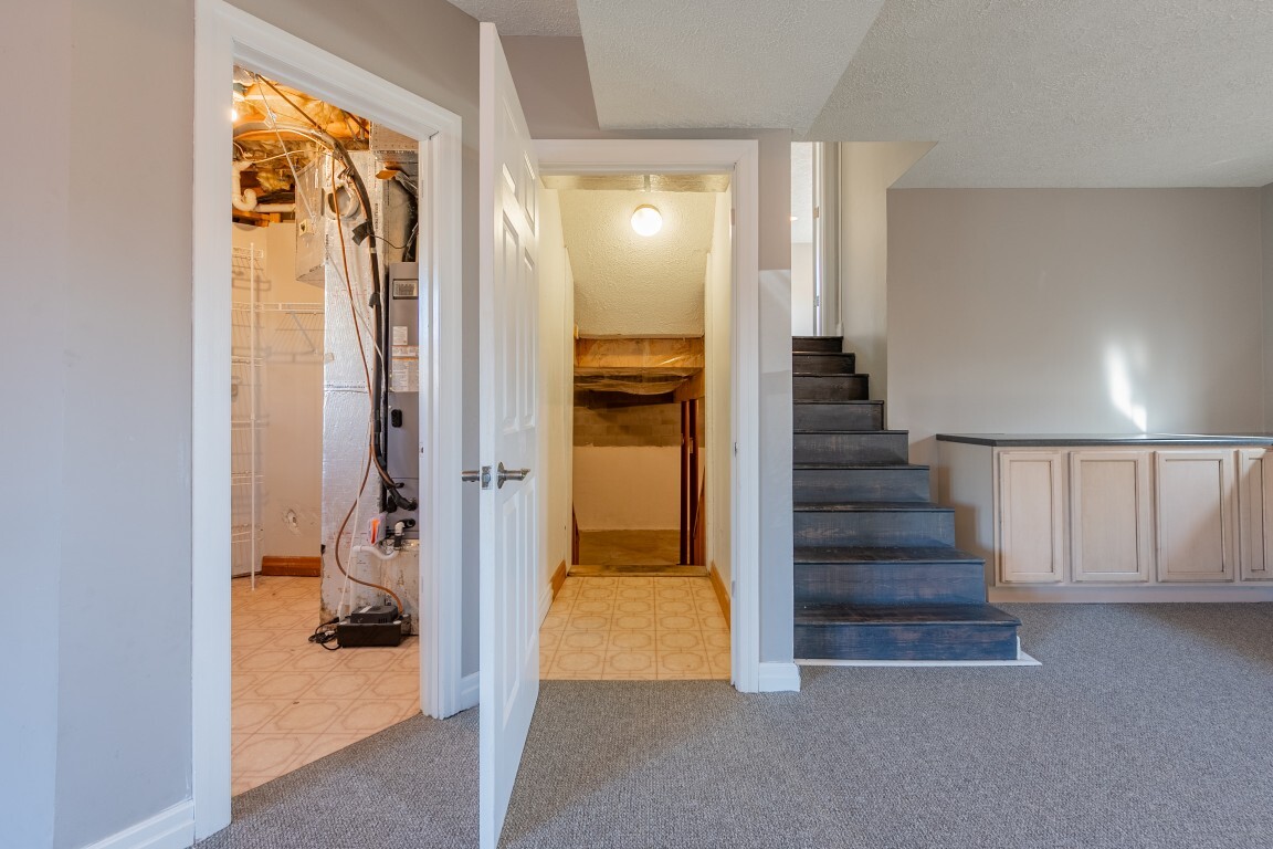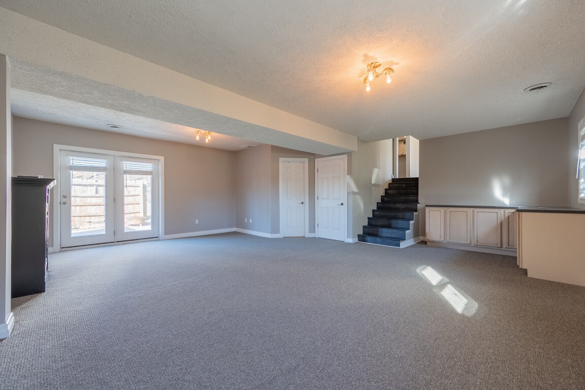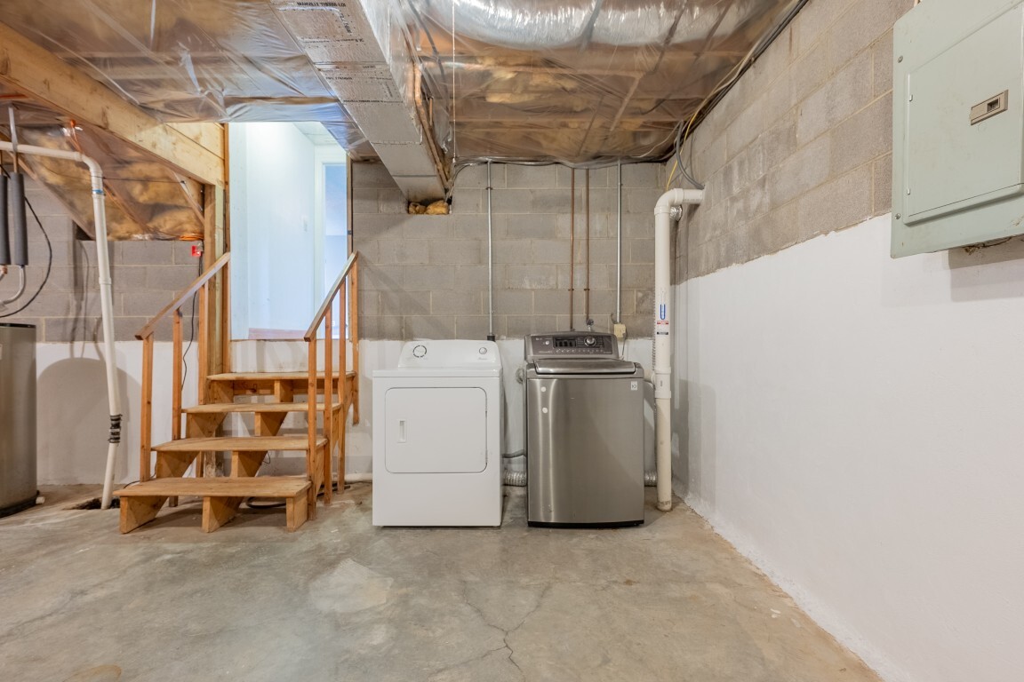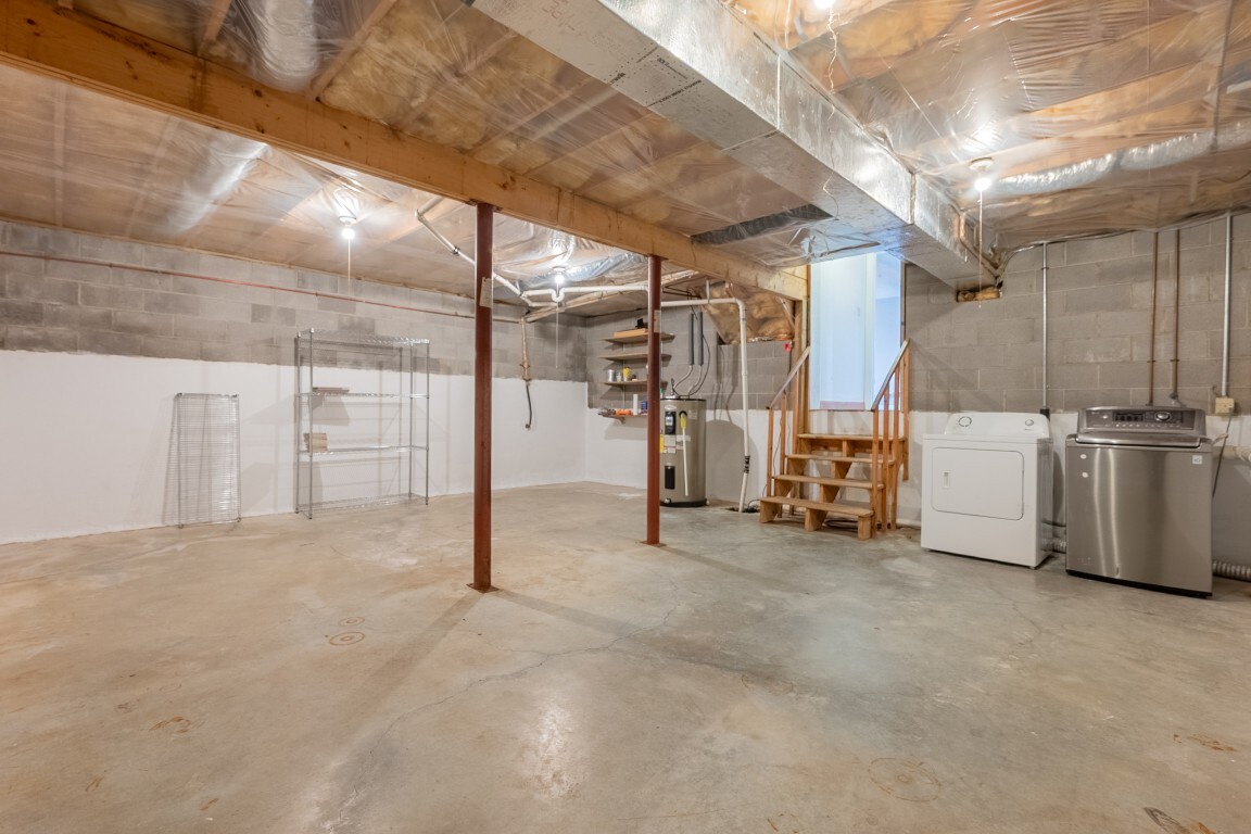 An expansive lower-level family room delivers versatile living space that easily adapts to your needs—whether for movie nights, a home office, a playroom, or a private space for hosting visiting guests. The gas log fireplace creates a cozy gathering spot, and French doors lead to the patio and generous backyard beyond. A nearby unfinished basement offers abundant storage or the opportunity to expand, complete with an existing laundry area. An unfinished basement allows for future customization or ample storage, with laundry already established.