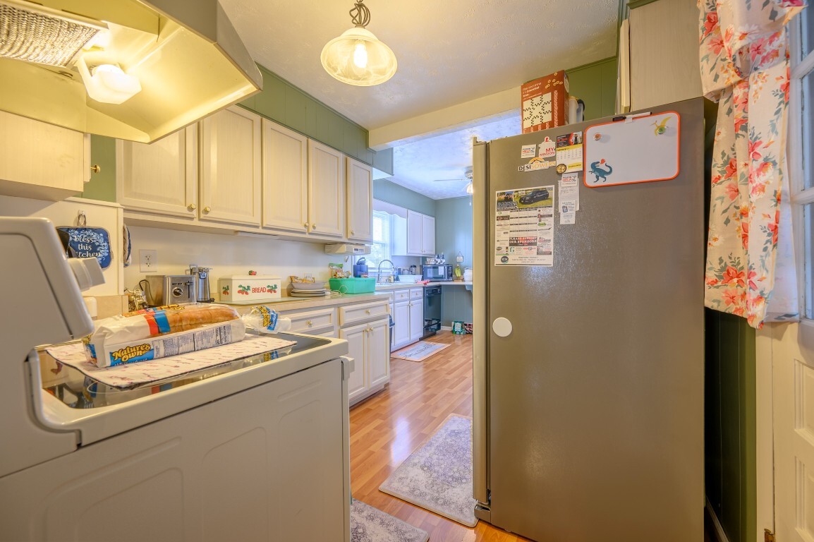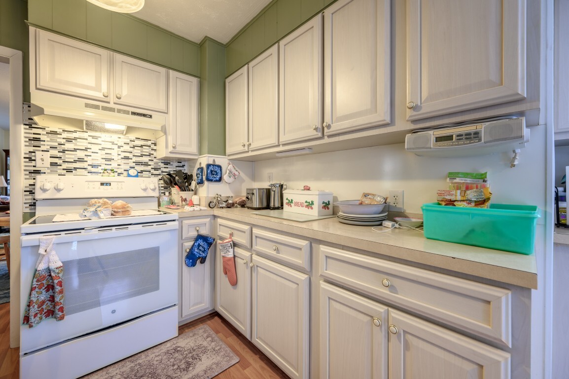 The updated kitchen shines with modern touches while maintaining classic charm. Featuring ample cabinetry and workspace, it’s both functional and stylish—perfect for meal prep. Enjoy the convenience of a laundry closet—no trips to the basement required! Perfectly positioned for easy access, making daily routines simple and efficient.