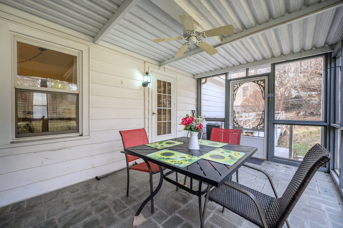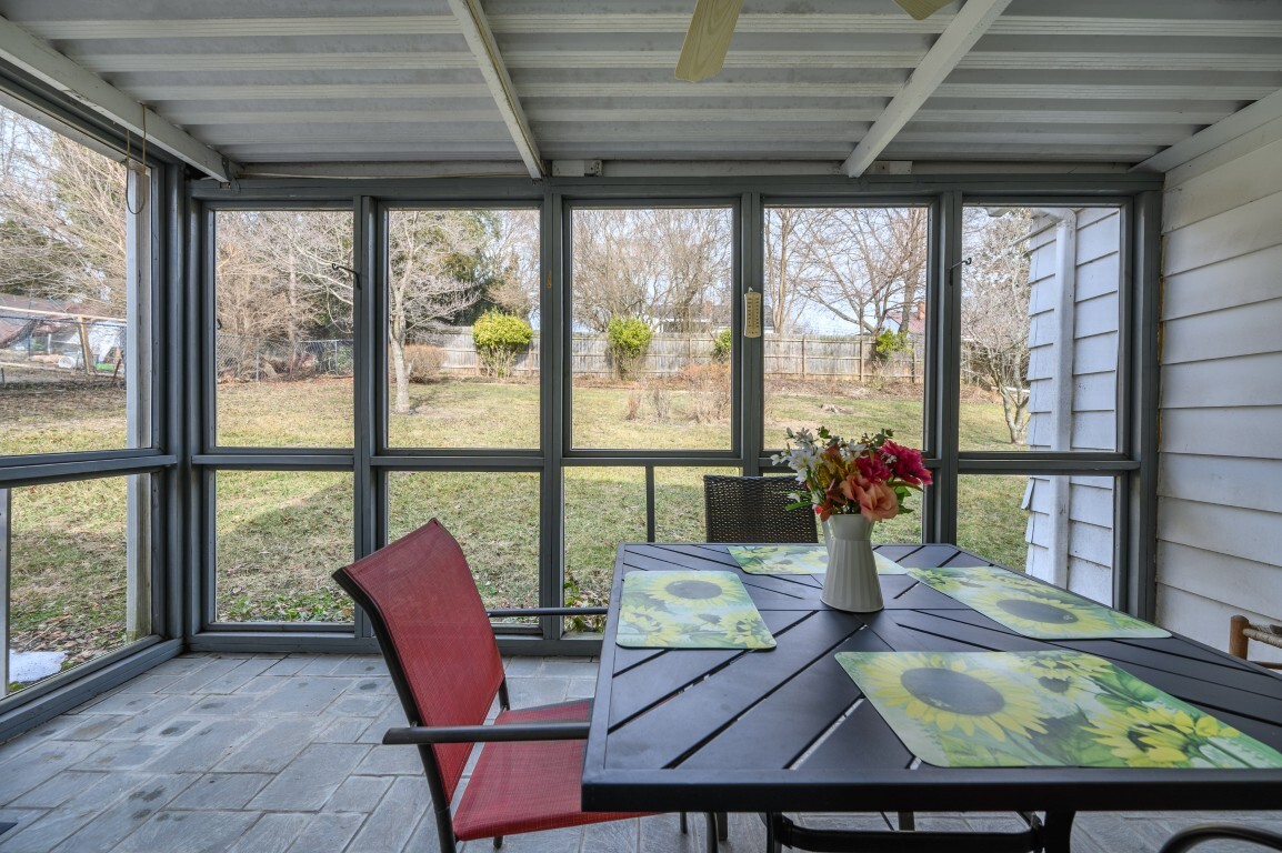 Sliding doors from the kitchen lead to the screened-in back porch expanding your living space and providing the perfect setting for outdoor relaxation without the nuisance of bugs or inclement weather. Dine al fresco or simply enjoying the delightful backyard views.