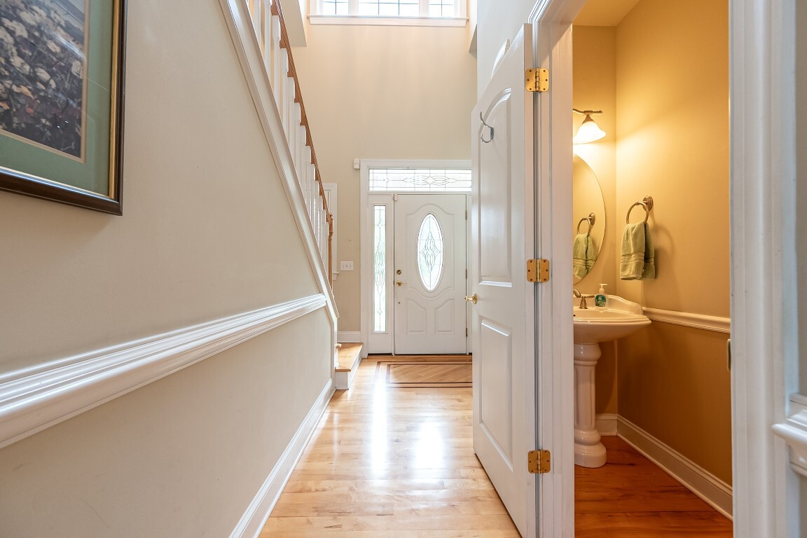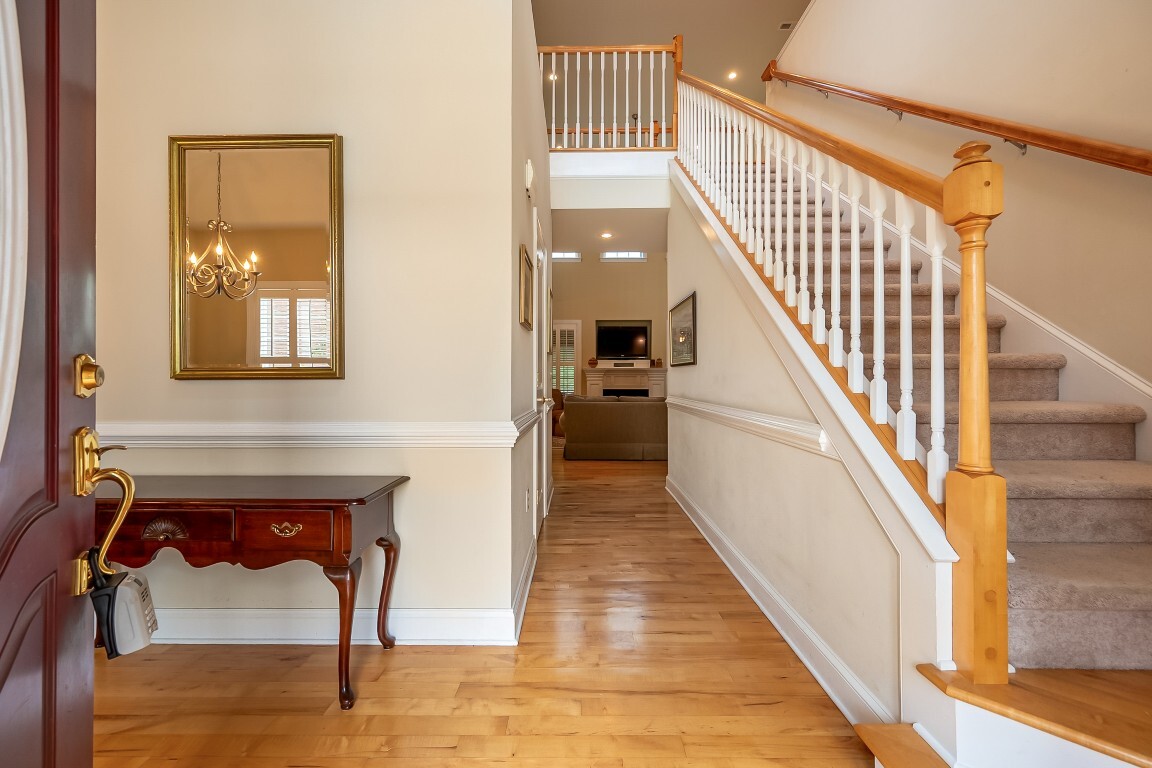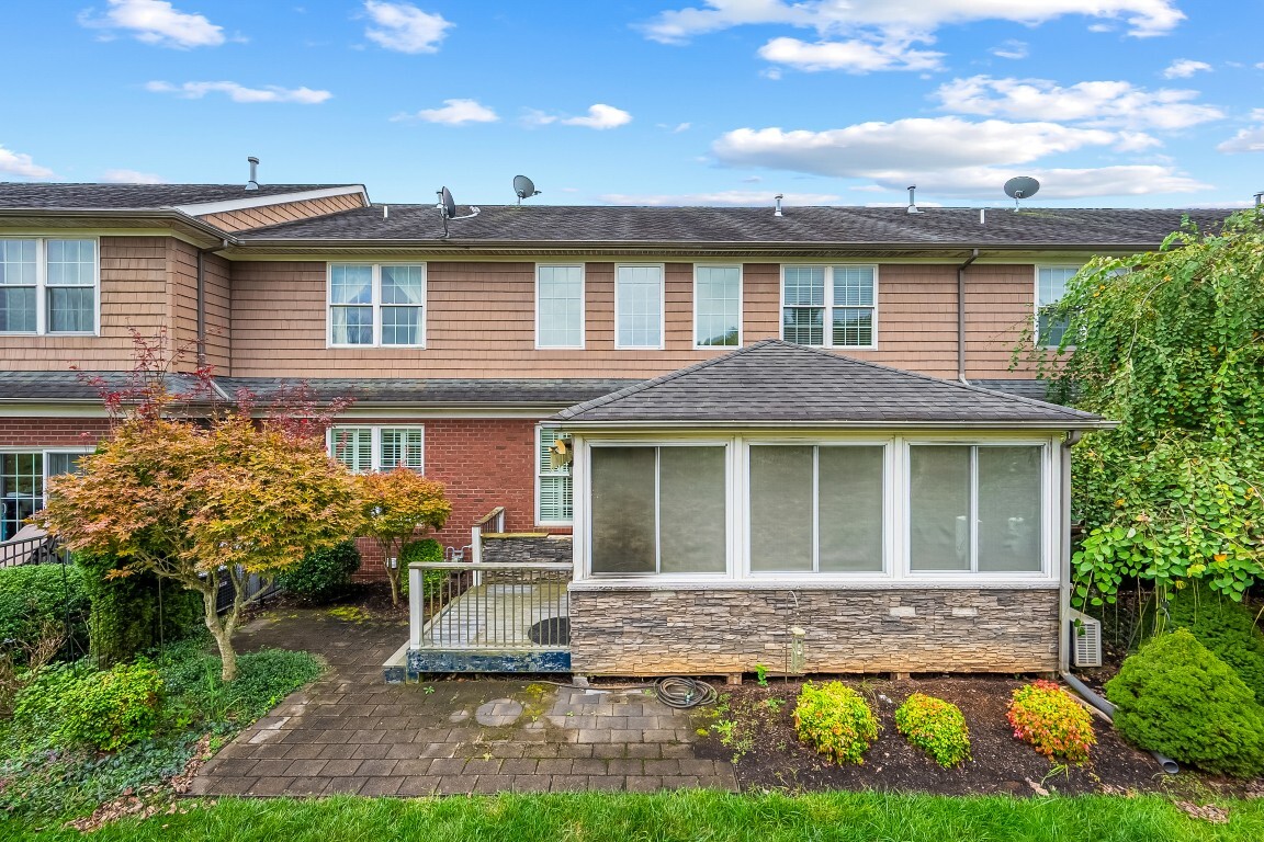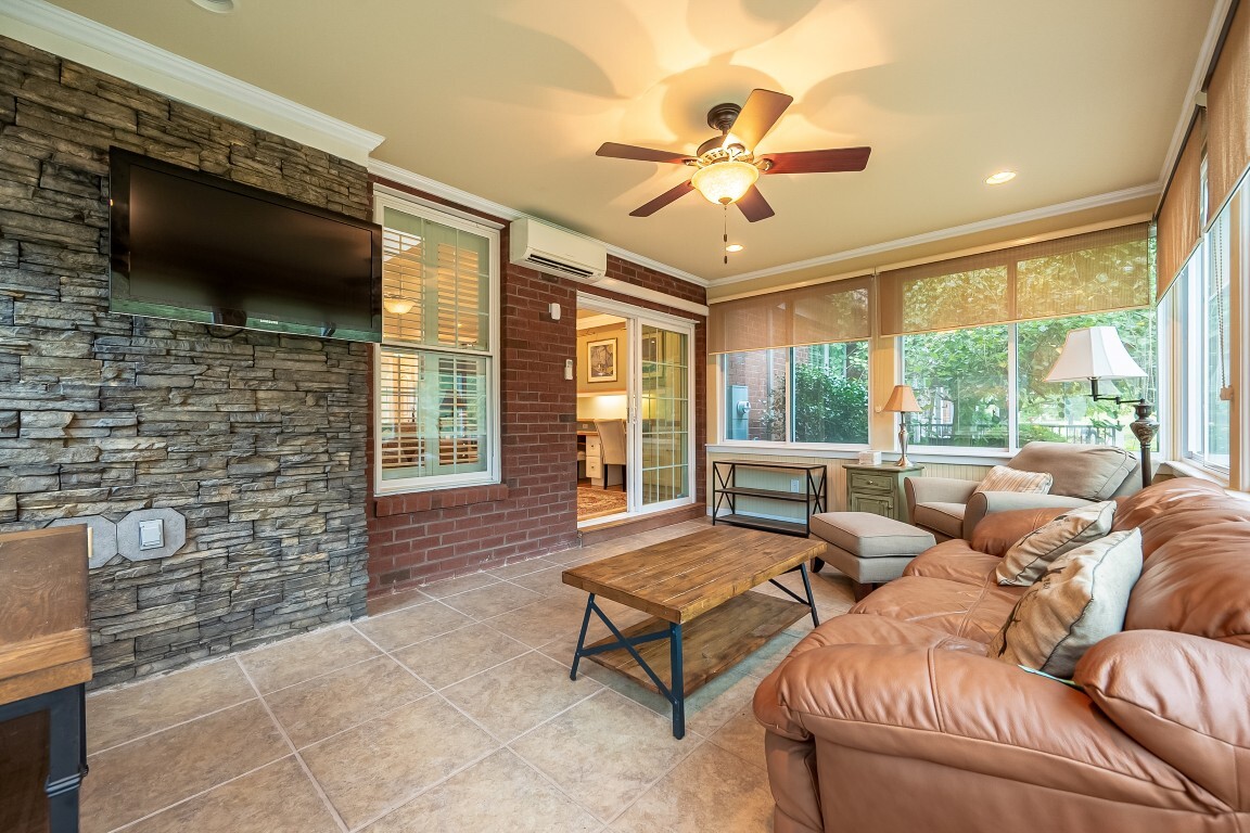 Anchored by a cozy gas fireplace, the living room is perfect for relaxed everyday living and sophisticated entertaining. With its high ceilings and an open balcony on the upper level, this space’s stunning architectural features create a striking visual connection throughout the home, enhancing both its openness and elegance. A fabulous sunroom offers year-round enjoyment without the worry of insects or inclement weather. Filled with natural light and designed for relaxation in every season, simply grab a good book and comfy throw to happily linger the day away. Head out to the rear deck and patio for outdoor relaxation and al fresco dining.